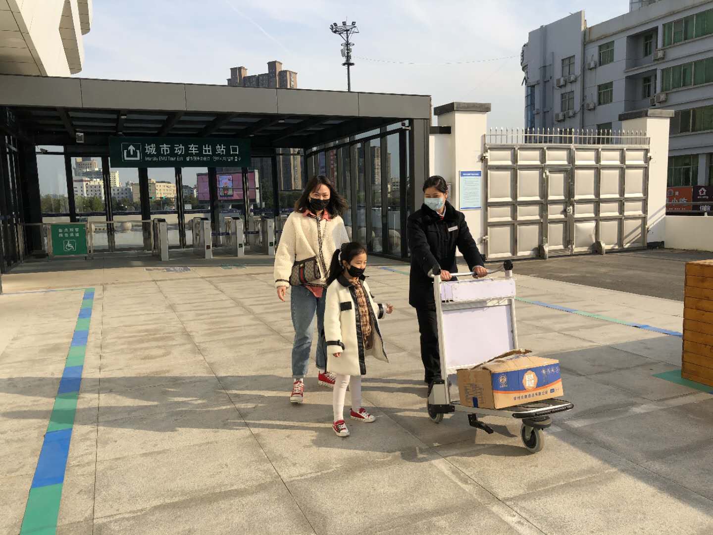 4月25日下午,乘坐第一班S3109的旅客大多數(shù)都是出行游玩的乘客。和往常一樣,城市動車組的站務員們在各自的崗位上值守著,這時一位年輕的母親帶著三歲的孩童,懷里還抱著一個很沉的大紙箱很吃力,緩慢地往站臺里走來。站務員劉倍倍趕忙上前接下她手中的大紙箱,減輕了她很大的負擔。在她出示連易通二維碼和進行完安檢后,站務員韓雪和劉倍倍幫她把紙箱放在座位旁。車次開始檢票時,站務員們將紙箱放在站內(nèi)的行李推車上,劉倍倍將其一直送到車廂內(nèi)。這位母親連聲道謝說:“太麻煩你們了,你們城市動車的服務真是太貼心了!”劉倍倍微笑的說:“能幫到您就是我們最開心的事情。”