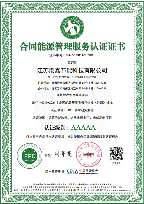 近日江蘇港嘉節(jié)能科技有限公司憑借其卓越的節(jié)能服務(wù)和專業(yè)的技術(shù)能力,成功通過嚴(yán)格的服務(wù)認(rèn)證審查,繼續(xù)保持在建筑節(jié)能改造、光伏發(fā)電項(xiàng)目、余熱余壓利用3項(xiàng)領(lǐng)域中的合同能源管理服務(wù)5A級能力認(rèn)證。本次復(fù)審認(rèn)證依據(jù)GB/T40010-2021《合同能源管理服務(wù)評價技術(shù)導(dǎo)則》標(biāo)準(zhǔn),由權(quán)威機(jī)構(gòu)嚴(yán)格審核,重點(diǎn)評估了港嘉公司在服務(wù)能力、過程控制及服務(wù)績效三大維度的綜合表現(xiàn)。復(fù)審結(jié)果確認(rèn)港嘉公司持續(xù)符合5A級認(rèn)證要求,技術(shù)能力、項(xiàng)目管理和服務(wù)水平均達(dá)到國家標(biāo)準(zhǔn)。