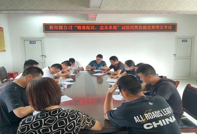 江蘇海建新絲路公司試驗檢測人員踴躍組隊報名參加了此次競賽活動并做了認真的準備??荚嚞F(xiàn)場,參賽人員認真思考和答題,將自己的理論知識和經(jīng)驗一絲不茍答在考卷上,在競賽考試中檢驗和提升自己。下一階段,參賽人員將認真準備并分組進行配合比設(shè)計現(xiàn)場操作考核。通過競賽賽出風格和水平,弘揚了愛崗敬業(yè)、精益求精的好風氣。