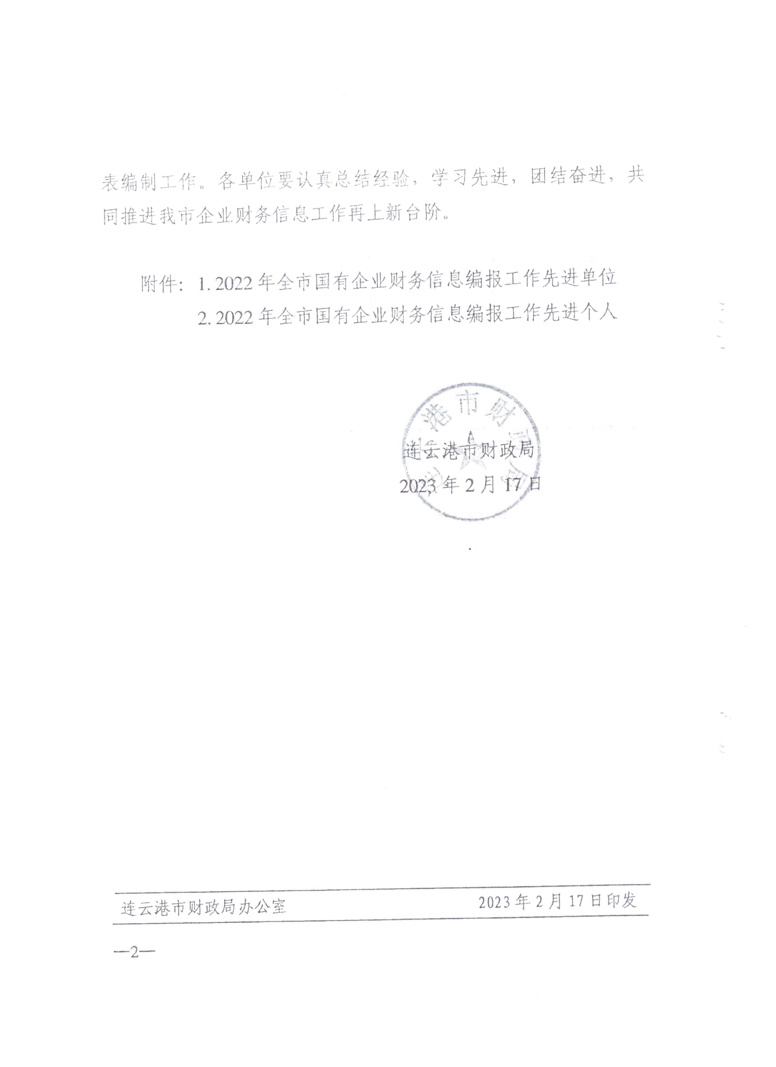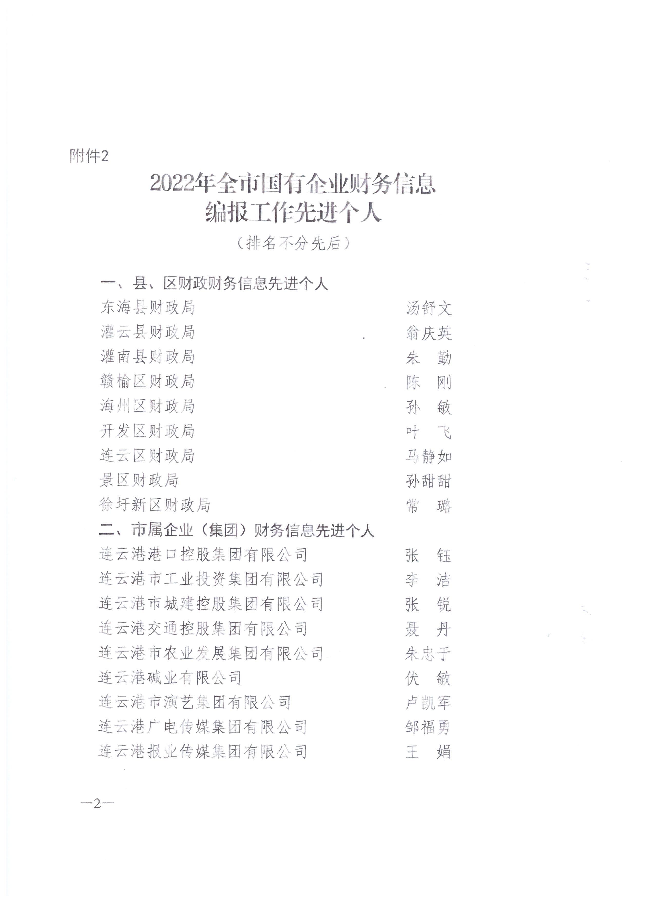 日前,從連云港市財政局下發(fā)的關(guān)于2022年企業(yè)財務(wù)快報編制工作綜合考評文件獲悉,集團被評為全市財務(wù)信息工作先進單位,集團財務(wù)融資部聶丹被評為財務(wù)信息工作先進個人。