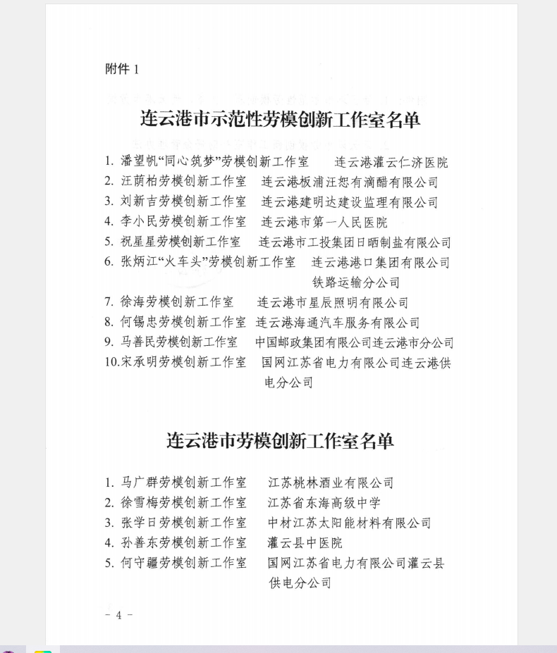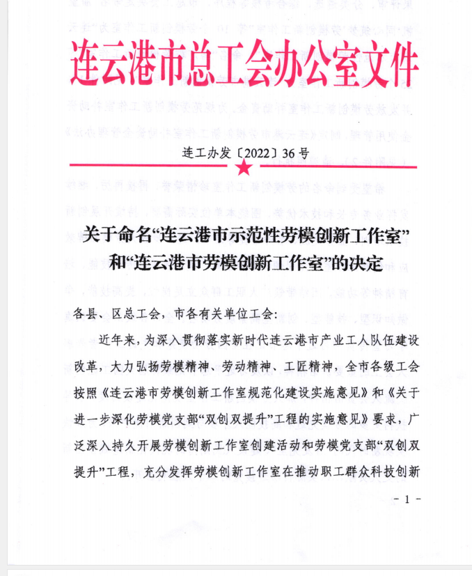 由于勞模何錫忠在汽車噴涂行業(yè)中取得的優(yōu)異成績,2022年6月份,經基層工會申報、成果評審等程序,“何錫忠勞模創(chuàng)新工作室”被連云港市總工會命名為“連云港市示范性勞模創(chuàng)新工作室”。