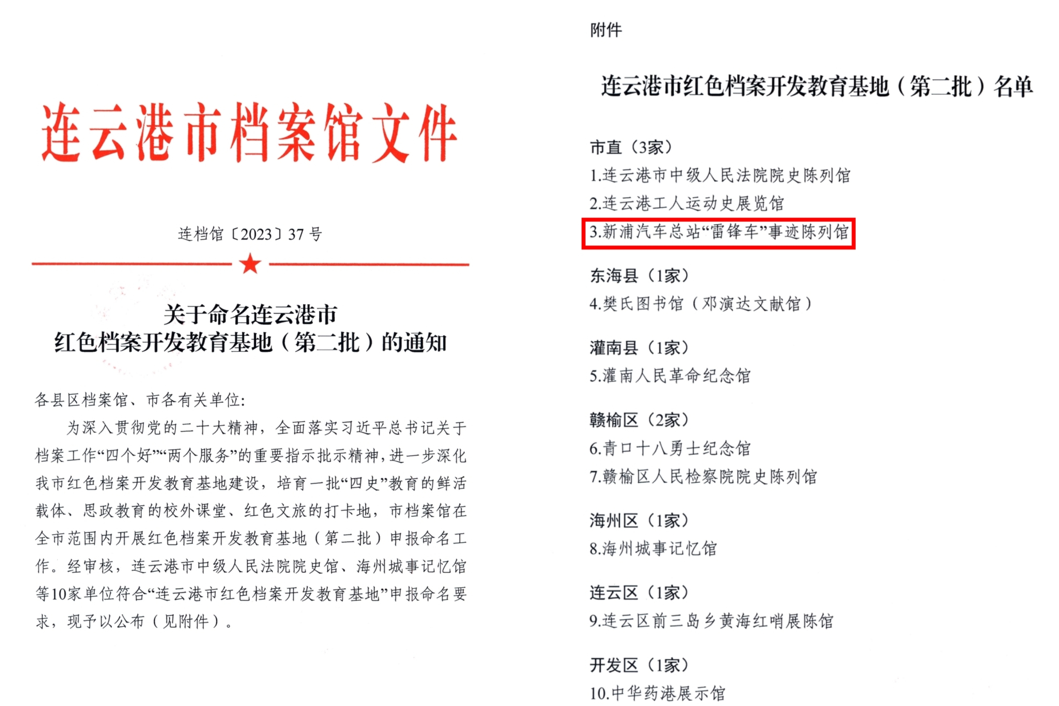 為進(jìn)一步深化連云港市紅色檔案開發(fā)教育基地建設(shè),培育一批“四史”教育的鮮活載體、思政教育的校外課堂、紅色文旅的打卡地,近日,連云港市檔案館在全市范圍內(nèi)開展紅色檔案開發(fā)教育基地(第二批)申報(bào)命名工作,經(jīng)審核,“雷鋒車”事跡陳列館入選連云港市紅色檔案開發(fā)教育基地(第二批)名單。