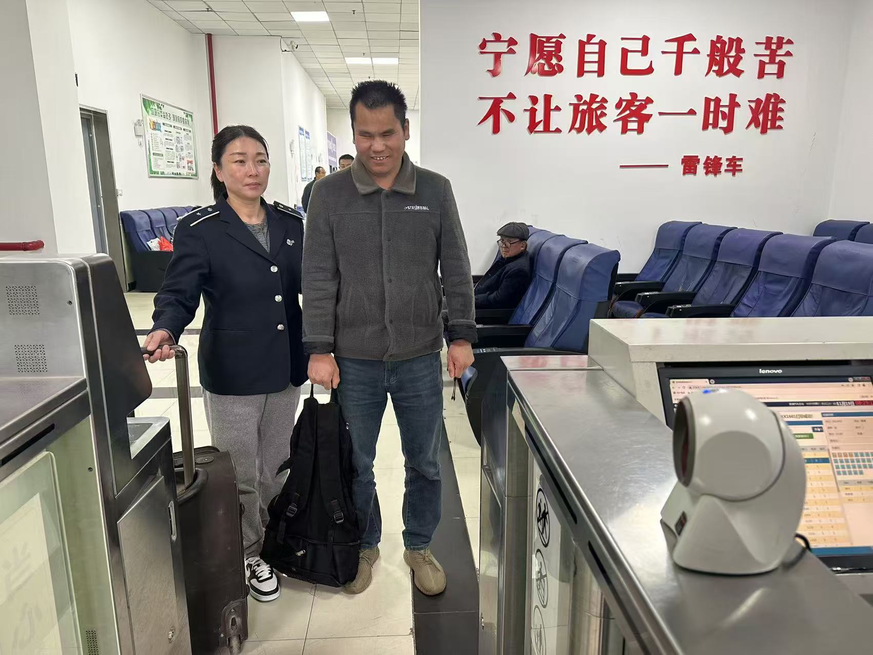 “您別急,我來幫您。”朱靜溫柔的話語如同冬日暖陽,瞬間溫暖了這位特殊旅客的心。她小心翼翼地接過旅客手中的行李,并細(xì)心地引導(dǎo)旅客通過安檢儀。在整個過程中,朱靜始終保持著耐心和細(xì)心,確保旅客能夠安全、順利地完成安檢程序,直至將旅客送上去往濱海的班車上。
