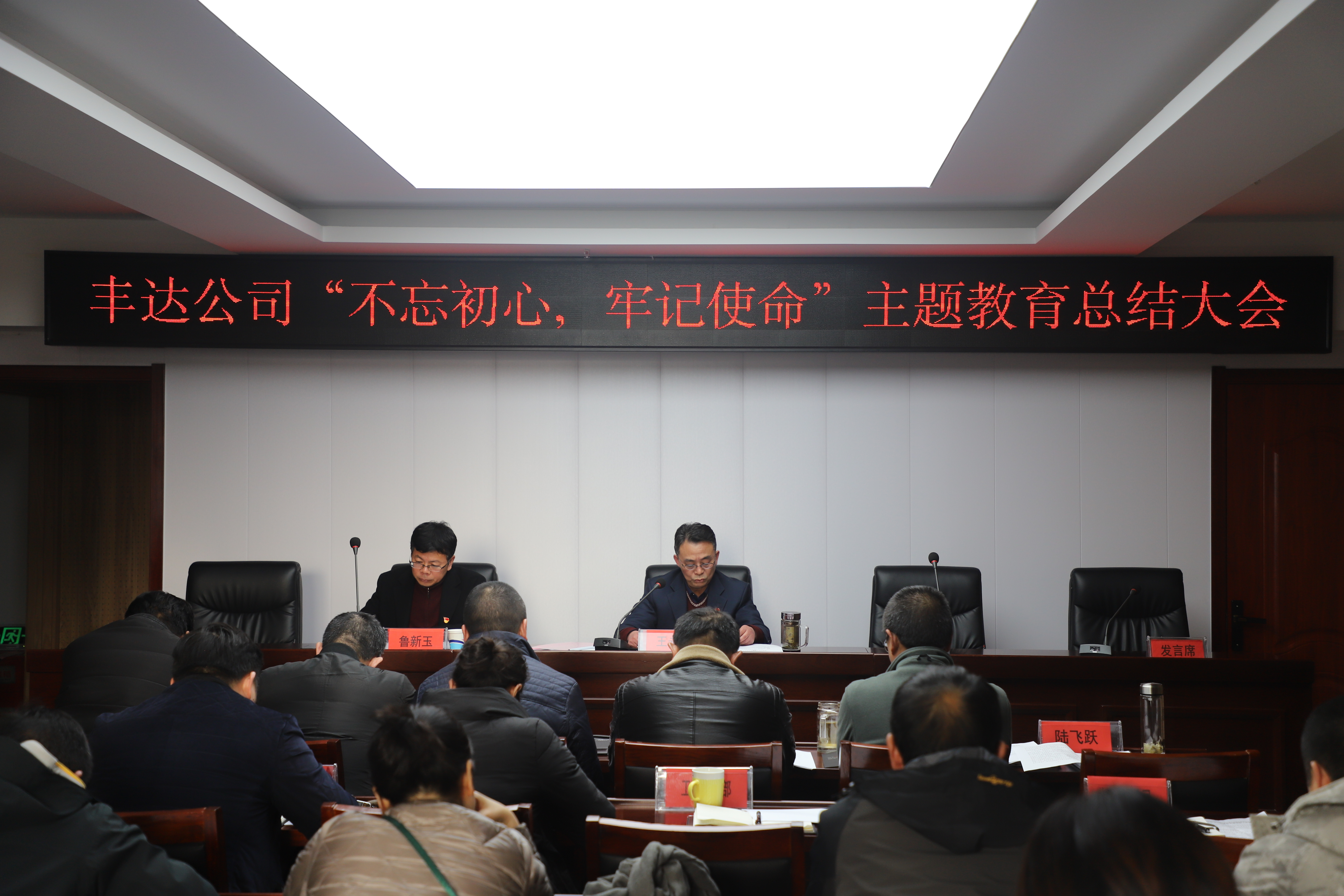 1月20日,豐達(dá)公司黨總支召開“不忘初心,牢記使命”主題教育總結(jié)大會,公司黨總支書記、董事長王永生主持會議并做主題教育工作情況總結(jié),集團主題教育第三指導(dǎo)組組長魯新玉出席會議并講話。
