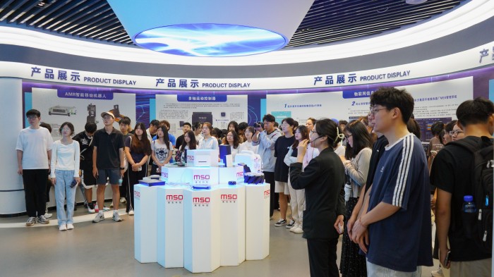 大學(xué)生們首先參觀了海宏科技展廳,工作人員以展廳背景墻上的十二個(gè)字“智能改變世界 創(chuàng)新引領(lǐng)未來(lái)”為切入點(diǎn),逐一介紹了公司的發(fā)展歷程、主要產(chǎn)品、工業(yè)物聯(lián)網(wǎng)及移動(dòng)機(jī)器人、智能制造、高速數(shù)控凹版印花等內(nèi)容。學(xué)子們紛紛圍繞在展品周圍,認(rèn)真聆聽(tīng)講解,并不時(shí)提出自己的疑問(wèn)和見(jiàn)解,與講解員進(jìn)行熱烈的互動(dòng)。有的同學(xué)圍繞自己的學(xué)習(xí)專業(yè)和對(duì)智能制造行業(yè)的認(rèn)知與工作人員積極交流,就企業(yè)對(duì)大學(xué)生的專業(yè)需求,以及未來(lái)的學(xué)習(xí)成長(zhǎng)、就業(yè)規(guī)劃等問(wèn)題有了更深刻地理解。