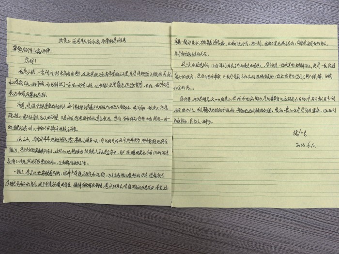 家住海州區(qū)萬象新海苑的小錢同學,也特意寫來了一封飽含深情的感謝信。在信中,他真誠地感謝為他提供3天送考服務的徐永磊師傅。小錢說,在這緊張又充滿希望的三天里,徐師傅就像一位貼心的守護者,用細致入微的關懷和周到貼心的服務,為他驅(qū)散了心中的緊張與不安,讓他能夠心無旁騖地追逐夢想。徐師傅的付出和奉獻,讓他真切地感受到了社會的溫暖和美好,也讓他更加堅定了努力拼搏、回報社會的決心。