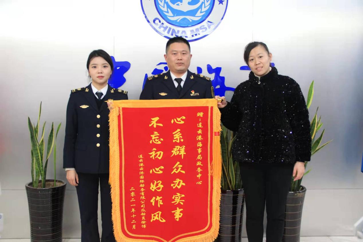 11月28日,物流云濟(jì)公司接船員徐博委托申辦化學(xué)品船貨物操作高級培訓(xùn)換證業(yè)務(wù)。當(dāng)天,業(yè)務(wù)員在申辦中發(fā)現(xiàn)船員所持證書化學(xué)品船貨物操作高級培訓(xùn)科目已過五年時效期,不能進(jìn)行更新?lián)Q證。公司及時與船員溝通進(jìn)一步了解情況,得知由于近年疫情影響,油化一體船業(yè)務(wù)驟減,船員近幾年只能在普通貨船工作,導(dǎo)致培訓(xùn)過時效期。了解情況后公司積極聯(lián)系到連云港海事局政務(wù)中心,咨詢相關(guān)政策。經(jīng)過多方溝通后,在連云港海事局政務(wù)中心葛景勇主任幫助下,陳佳琳科員通過“綠色通道”加急辦理,12月27日海員徐博化學(xué)品船貨物操作高級培訓(xùn)資格證申辦完成,為了表示感激之情,云濟(jì)公司及船員聯(lián)名送上錦旗。