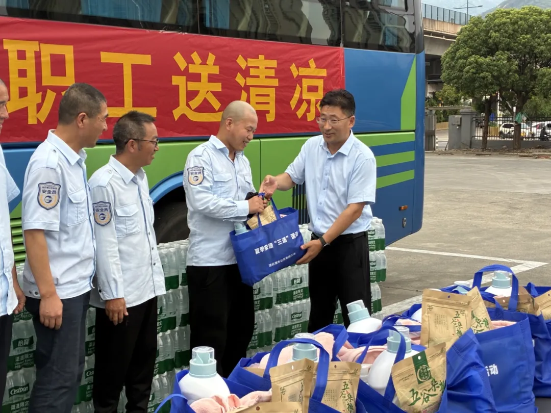 活動(dòng)中,集團(tuán)領(lǐng)導(dǎo)深入各公交場站及維修車間,與一線職工親切交談,詳細(xì)詢問他們?cè)诟邷靥鞖庀碌墓ぷ鲝?qiáng)度、作息安排及防暑措施落實(shí)情況。每到一處,領(lǐng)導(dǎo)班子成員都為職工們送上精心準(zhǔn)備的防暑降溫“大禮包”,包括礦泉水、綠豆、冰糖、洗衣液等物資,叮囑大家在堅(jiān)守崗位的同時(shí),務(wù)必做好自我防護(hù),合理調(diào)整休息時(shí)間,確保以良好的狀態(tài)投入工作。