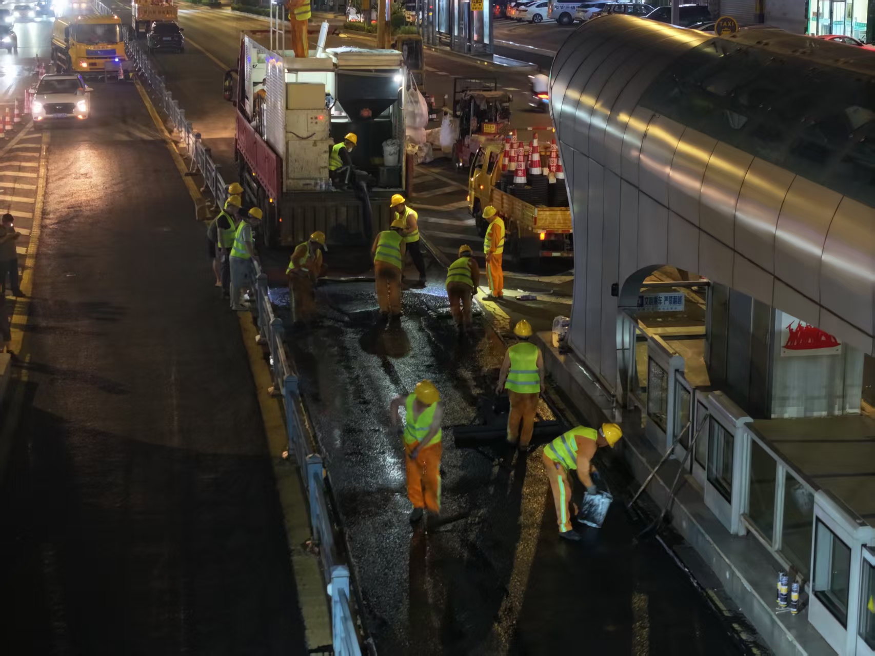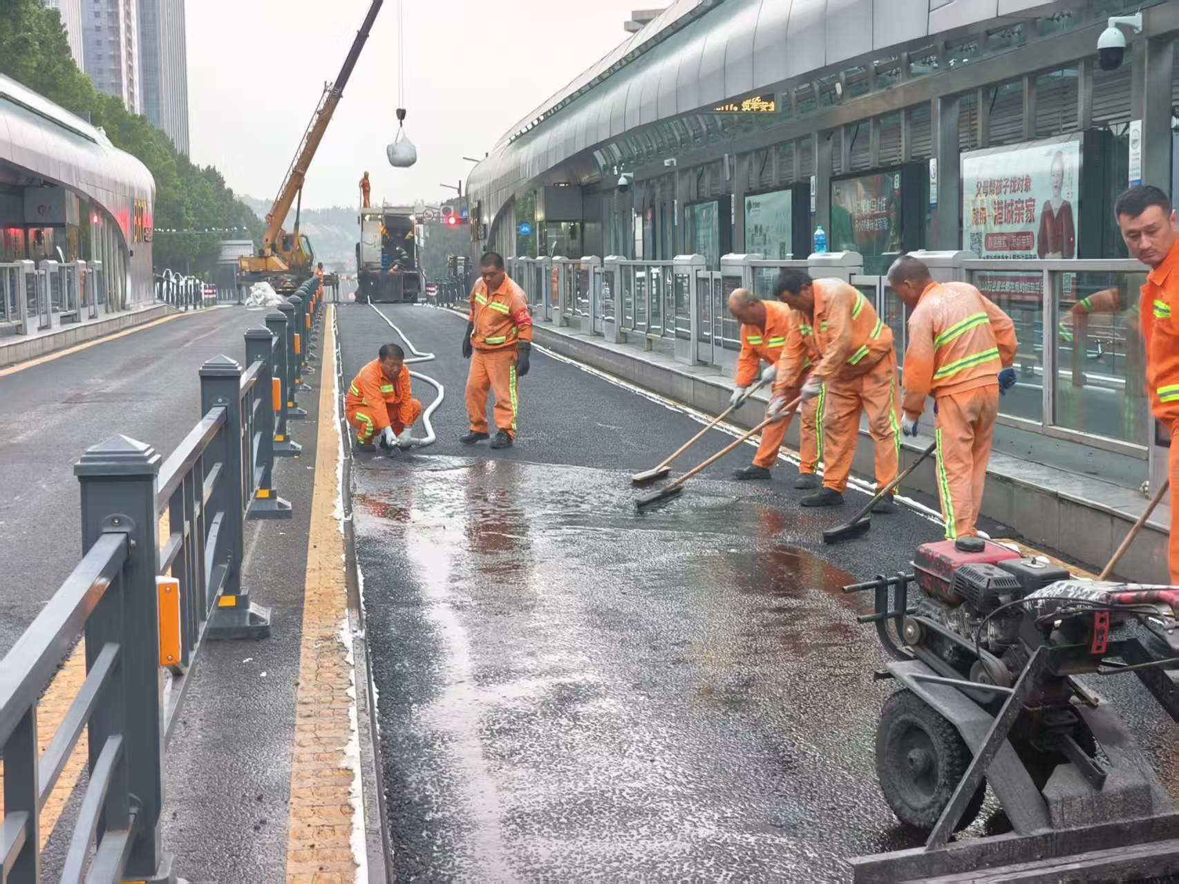 在港城BRT公交站臺(tái)專用車道養(yǎng)護(hù)項(xiàng)目中,董入龍創(chuàng)新工作室再次扛起“創(chuàng)新大旗”。公司管養(yǎng)的84個(gè)BRT公交站臺(tái)60米范圍專用車道,因客流量大、車輛??款l繁,路面車轍病害嚴(yán)重,傳統(tǒng)養(yǎng)護(hù)難以兼顧效率與質(zhì)量。工作室成員共同研判后,選取人流密集的一四九站、墟溝購(gòu)物中心站及西園路站作為試點(diǎn),引入“灌注式半柔性路面技術(shù)”。為確保技術(shù)落地,董入龍帶領(lǐng)團(tuán)隊(duì)開展20余次模擬試驗(yàn),精準(zhǔn)把控材料攤鋪厚度、壓實(shí)溫度等核心參數(shù);施工期間,他創(chuàng)新采用“分段作業(yè) + 錯(cuò)峰施工”模式,協(xié)調(diào)公交部門調(diào)整臨時(shí)??奎c(diǎn),最終僅用72小時(shí)便完成3個(gè)站臺(tái)專用車道的病害整治。經(jīng)后期跟蹤觀測(cè),試點(diǎn)路段路面平整度、抗滑性能均達(dá)到優(yōu)質(zhì)標(biāo)準(zhǔn)。