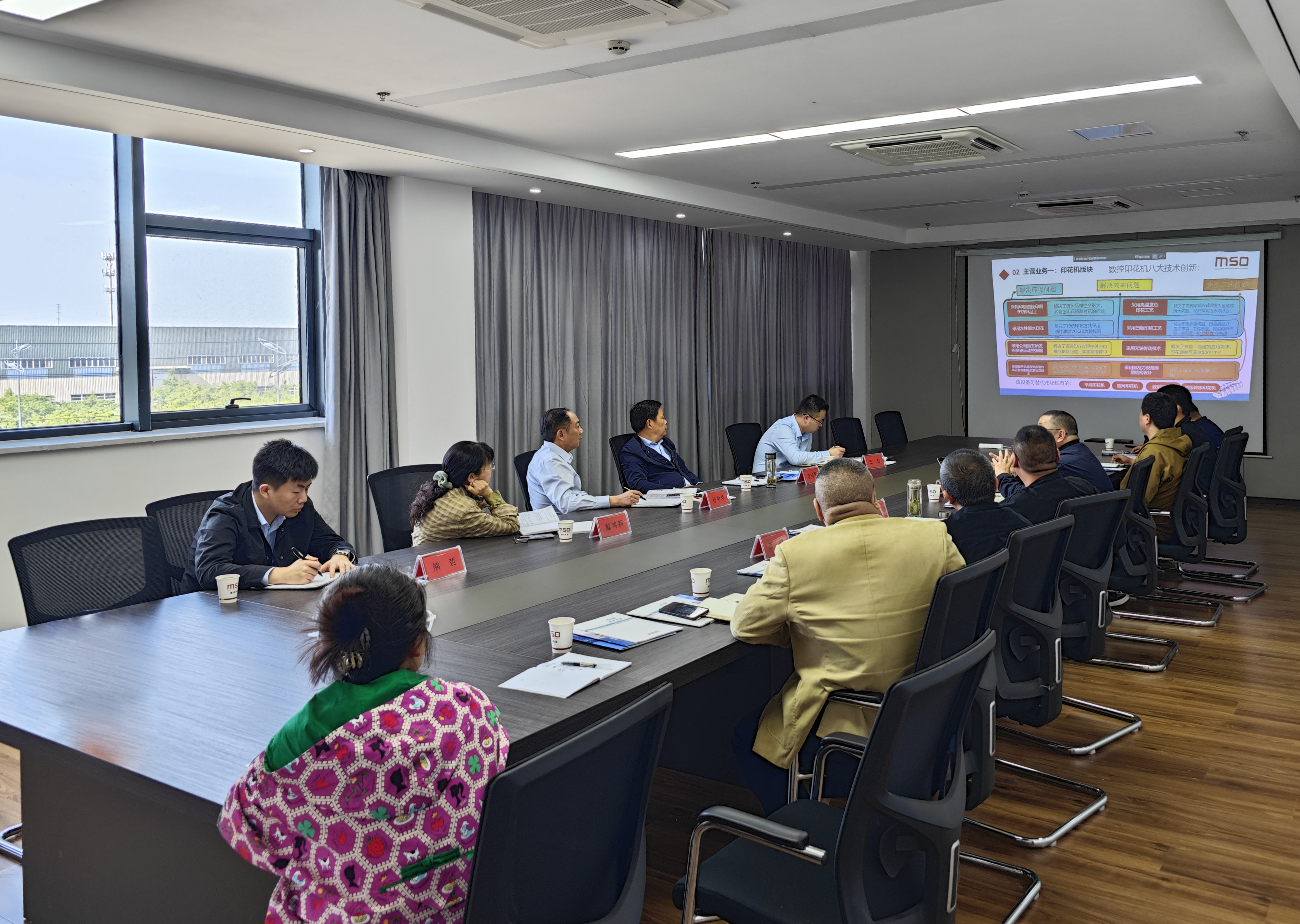 孫中華一行實地參觀了MSO高速凹版印花成套設備、智能移動機器人等生產(chǎn)車間,深入了解公司發(fā)展歷史沿革、研發(fā)成果、技術應用及上市規(guī)劃等情況;海宏科技公司負責人圍繞公司三大業(yè)務板塊、兩大發(fā)展定位、技術優(yōu)勢以及后續(xù)發(fā)展計劃作了詳細匯報。