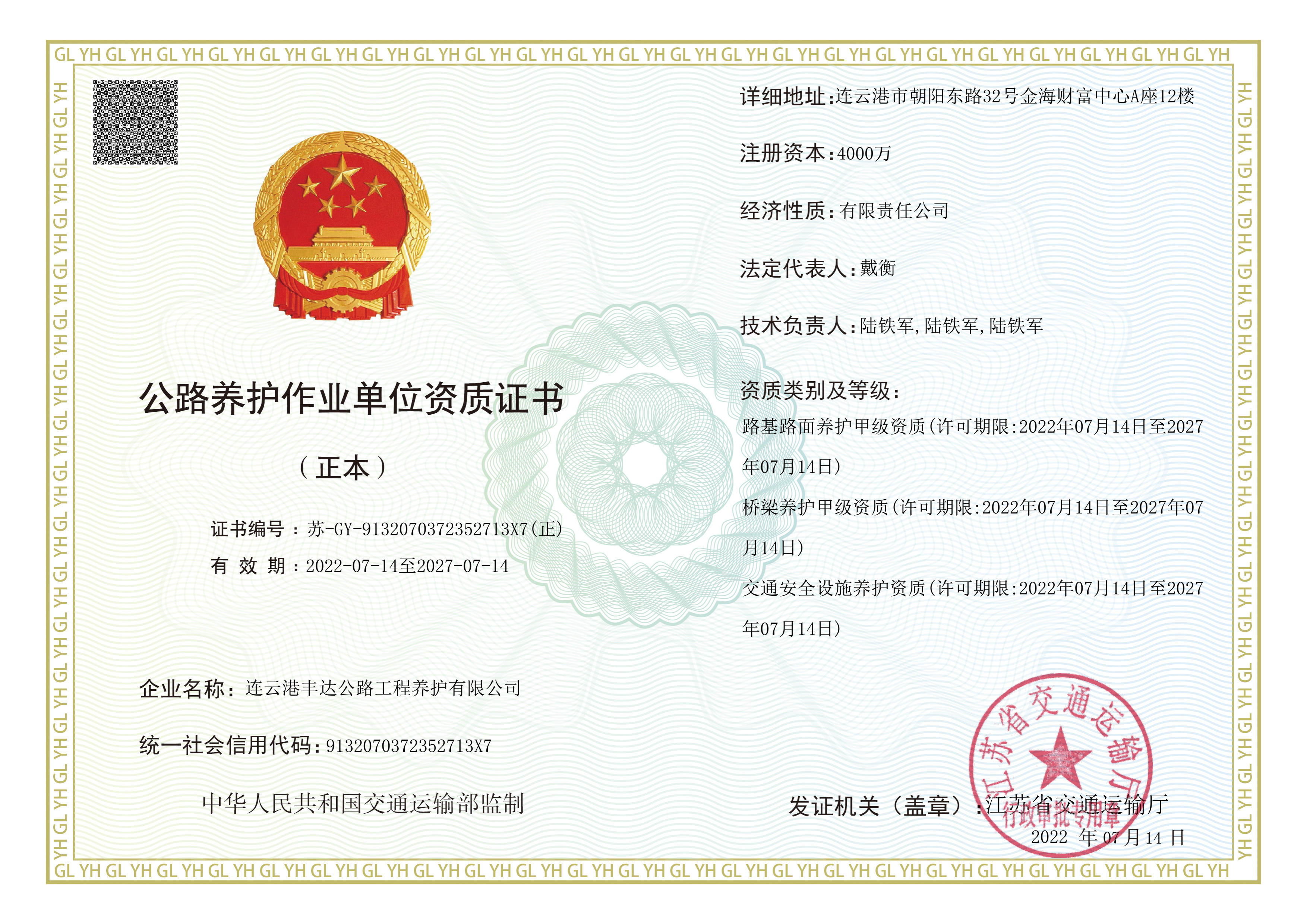 本次新取得的三項資質(zhì)證書,為豐達公司繼續(xù)立足公路養(yǎng)護市場奠定基礎(chǔ),也意味著可以拓展更加廣闊的公路養(yǎng)護市場領(lǐng)域。