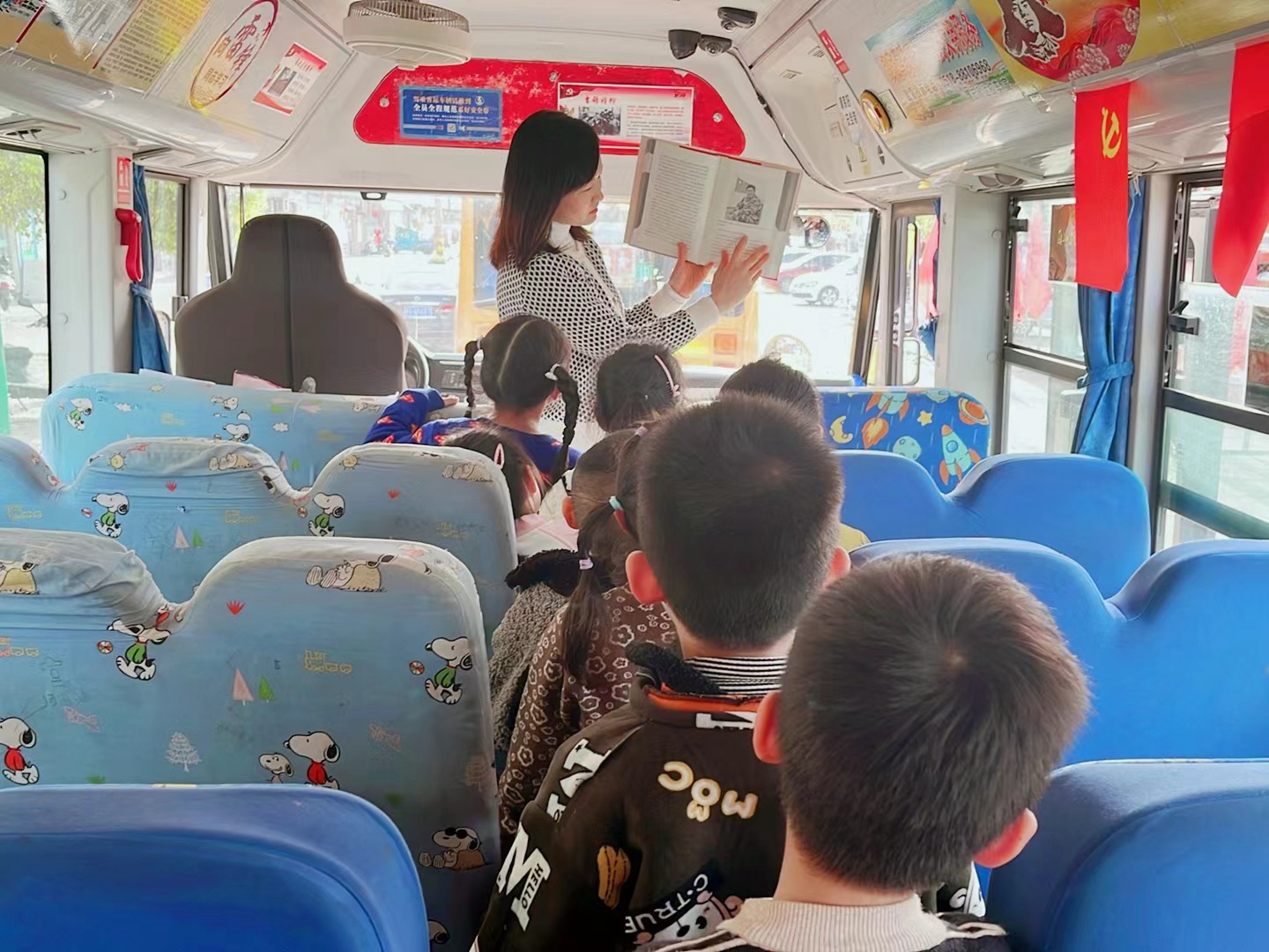 以書為媒,以閱讀為紐帶,整個(gè)車廂都浸潤著濃濃的書香。伴著孩子們的朗朗書聲,千年的文化古韻在行駛的校車中傳頌。