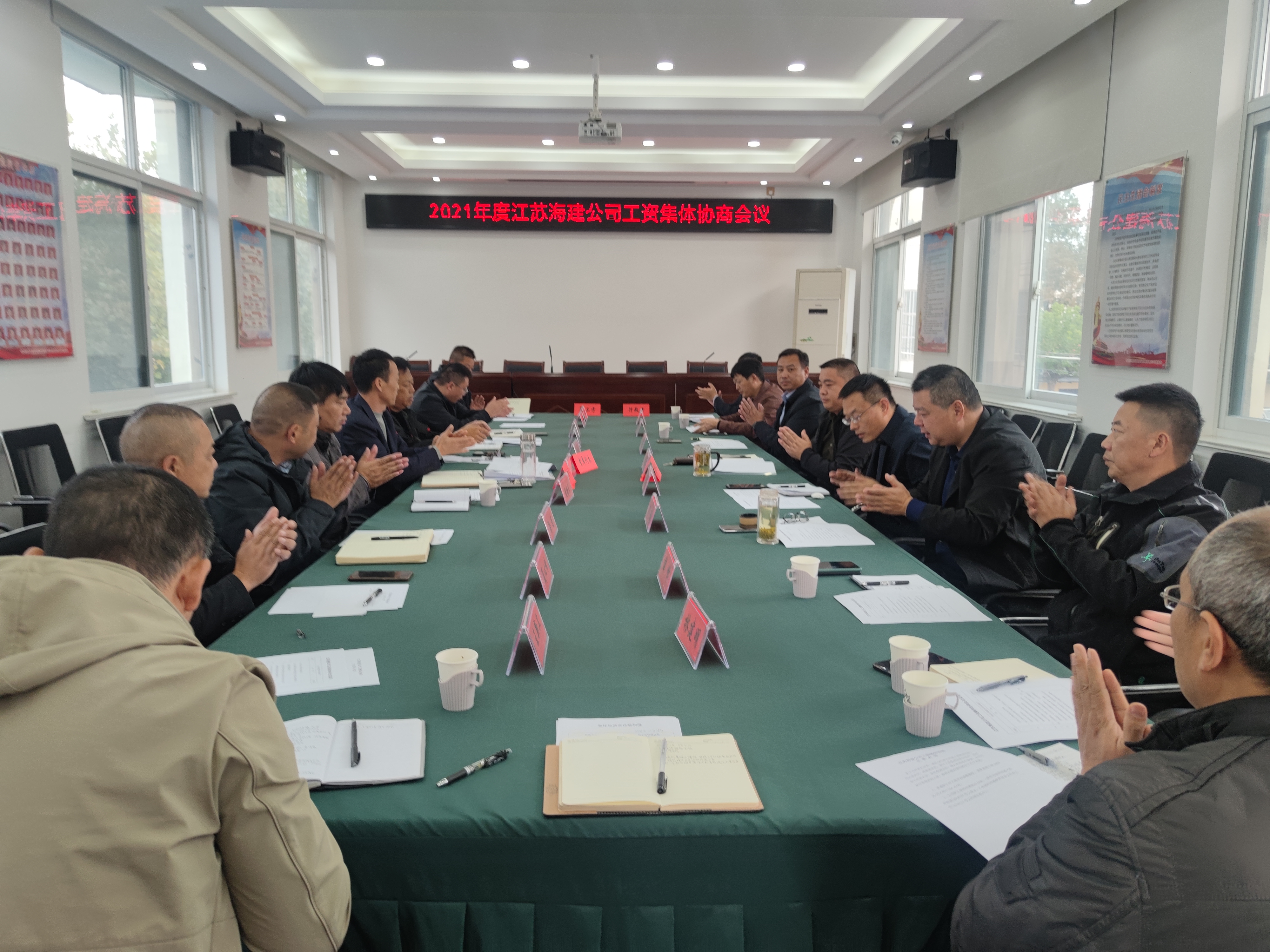 為達(dá)到職工與企業(yè)之間相互和諧,提高企業(yè)經(jīng)營管理水平,10月18日,江蘇海建公司召開了2021年度工資集體協(xié)商會議,會議由職工方首席代表劉智主持,總經(jīng)理陸飛躍作為行政方首席代表,職企雙方各10人,既有總公司領(lǐng)導(dǎo)、分公司領(lǐng)導(dǎo)和部門負(fù)責(zé)人,也有干部代表、中青年代表、老職工代表,公司紀(jì)檢全程參與,雙方主要圍繞四項(xiàng)合同展開了系列討論。