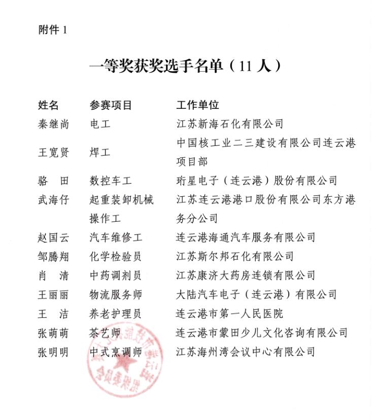大賽成績的取得,離不開競賽選手堅持不懈的拼博精神和精益求精的工匠精神。據(jù)悉,對獲得決賽一等獎的趙國云,由市政府授予“連云港技能狀元”榮譽稱號,經(jīng)綜合考察合格后由市總工會授予“連云港市五一勞動獎章”榮譽稱號。對獲得三等獎的相帥和張建馳,由市人力資源和社會保障局授予“連云港市技能標兵”榮譽稱號,市總工會授予“連云港市五一創(chuàng)新能手”榮譽稱號。