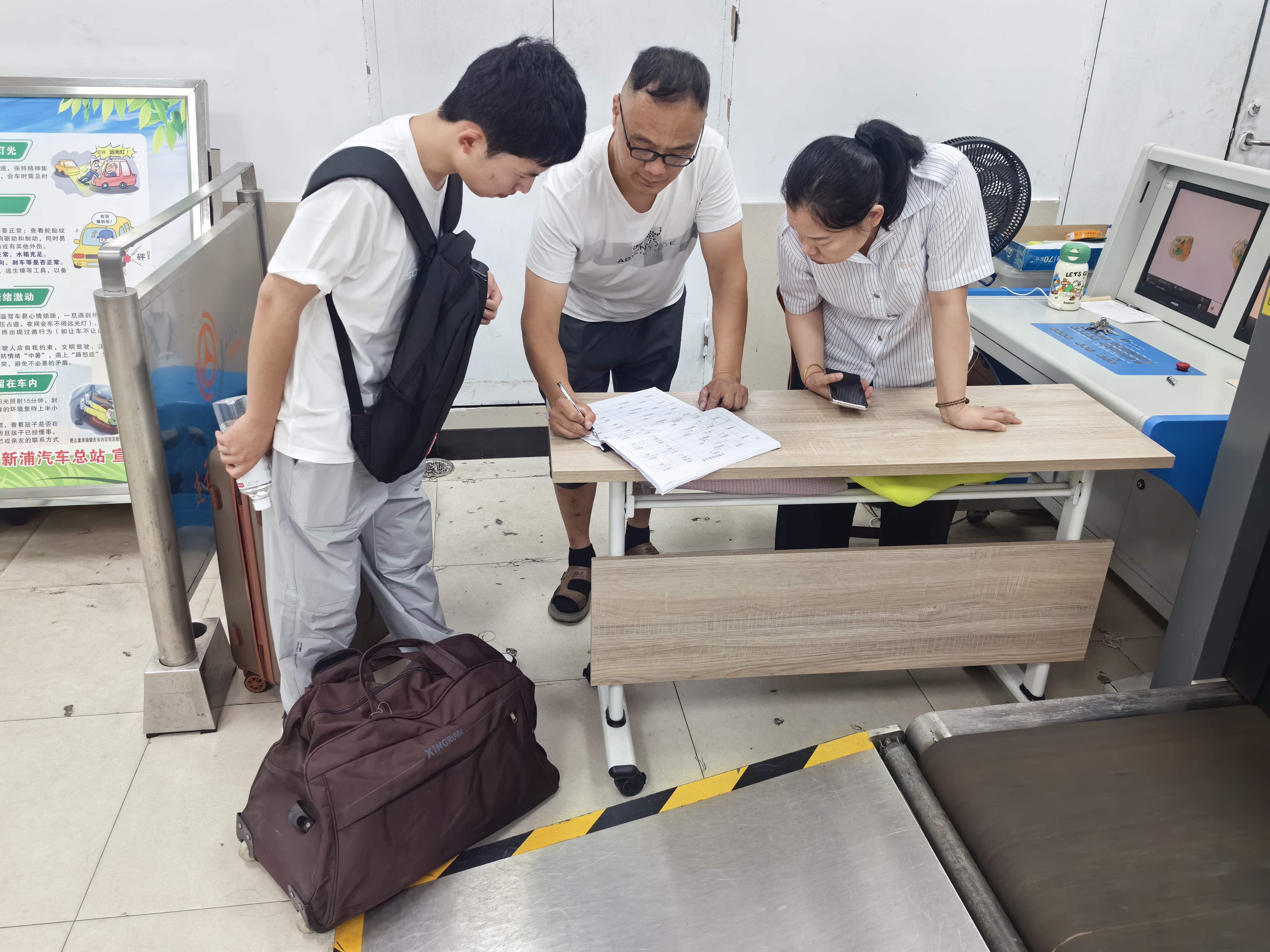 當(dāng)日上午,武心杰駕駛機(jī)場(chǎng)巴士從花果山機(jī)場(chǎng)出發(fā),搭載長(zhǎng)沙來(lái)連的落地旅客前往新浦汽車(chē)總站。抵達(dá)終點(diǎn)后,按照“一程一清潔、一程一檢查”的運(yùn)營(yíng)要求,對(duì)車(chē)廂進(jìn)行清掃時(shí),發(fā)現(xiàn)兩個(gè)深色行李包遺落在座位上,無(wú)法聯(lián)系失主。武心杰立即將行李包送至總站“雷鋒車(chē)”組服務(wù)臺(tái),詳細(xì)說(shuō)明拾獲時(shí)間、地點(diǎn)及行李外觀特征,交由服務(wù)臺(tái)工作人員登記。不一會(huì),一名長(zhǎng)沙旅客匆匆趕到“雷鋒車(chē)”組服務(wù)臺(tái),稱其下車(chē)時(shí)不慎將行李遺落在機(jī)場(chǎng)巴士上,經(jīng)工作人員核對(duì)身份信息、行李內(nèi)物品無(wú)誤后,當(dāng)場(chǎng)將行李包交還旅客。