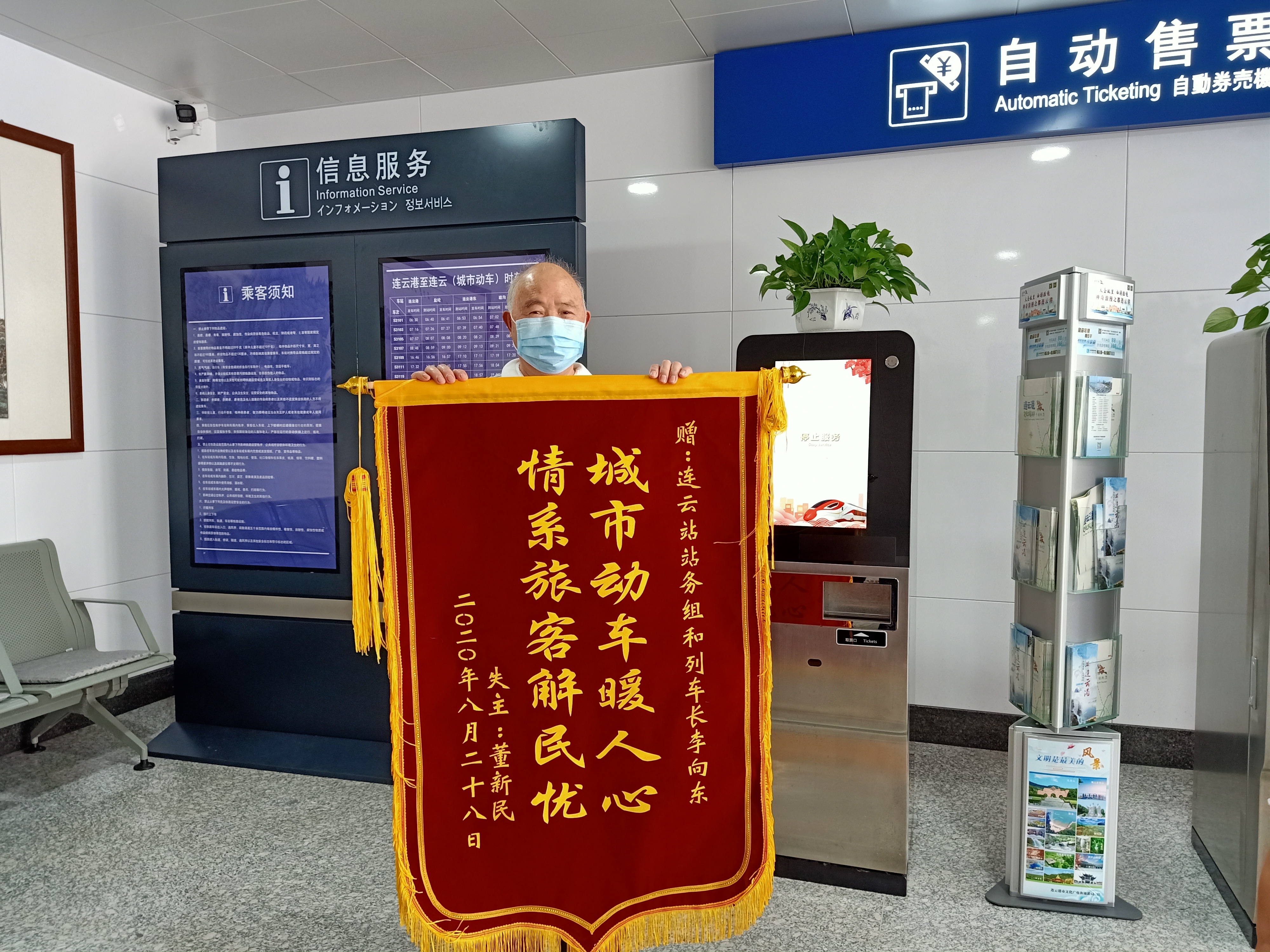 大爺回去一直惦念著此事,想用最淳樸真誠的方式表達(dá)他的感謝。隔了幾天后,送來了錦旗及感謝信。紅艷艷的錦旗是對城市動車工作人員的肯定。城市動車工作人員能做到急乘客所急,憂乘客所憂,盡最大的努力去幫助他們。