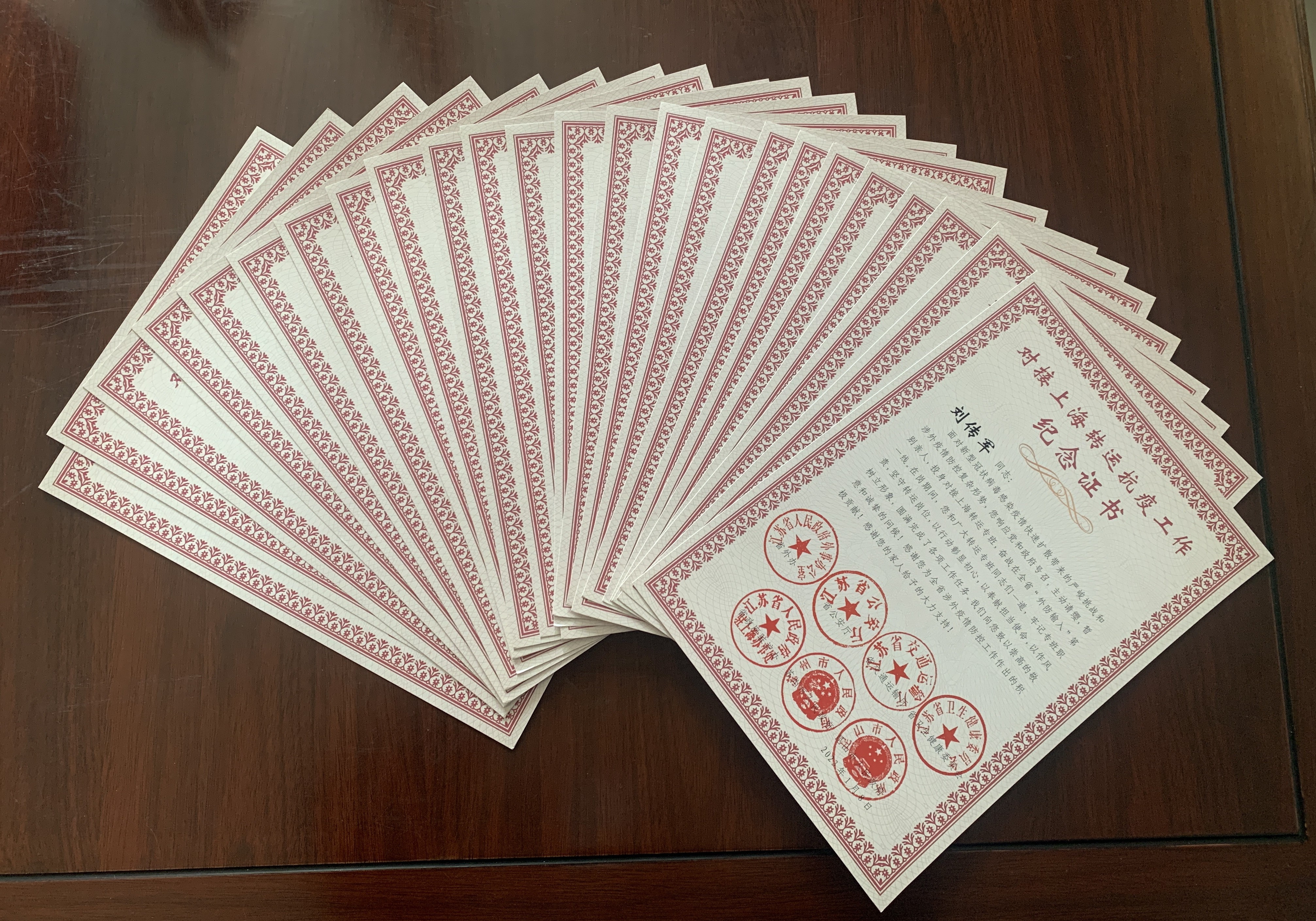 近日,汽車公司收到由省外辦、省公安廳、省交通運(yùn)輸廳、省衛(wèi)生健康委員會(huì)、省政府駐瀘辦、蘇州市人民政府、昆山市人民政府共同頒發(fā)的44份對(duì)接上海轉(zhuǎn)運(yùn)抗疫工作紀(jì)念證書,向支援疫情防控工作的集體和個(gè)人表示了誠(chéng)摯的謝意。