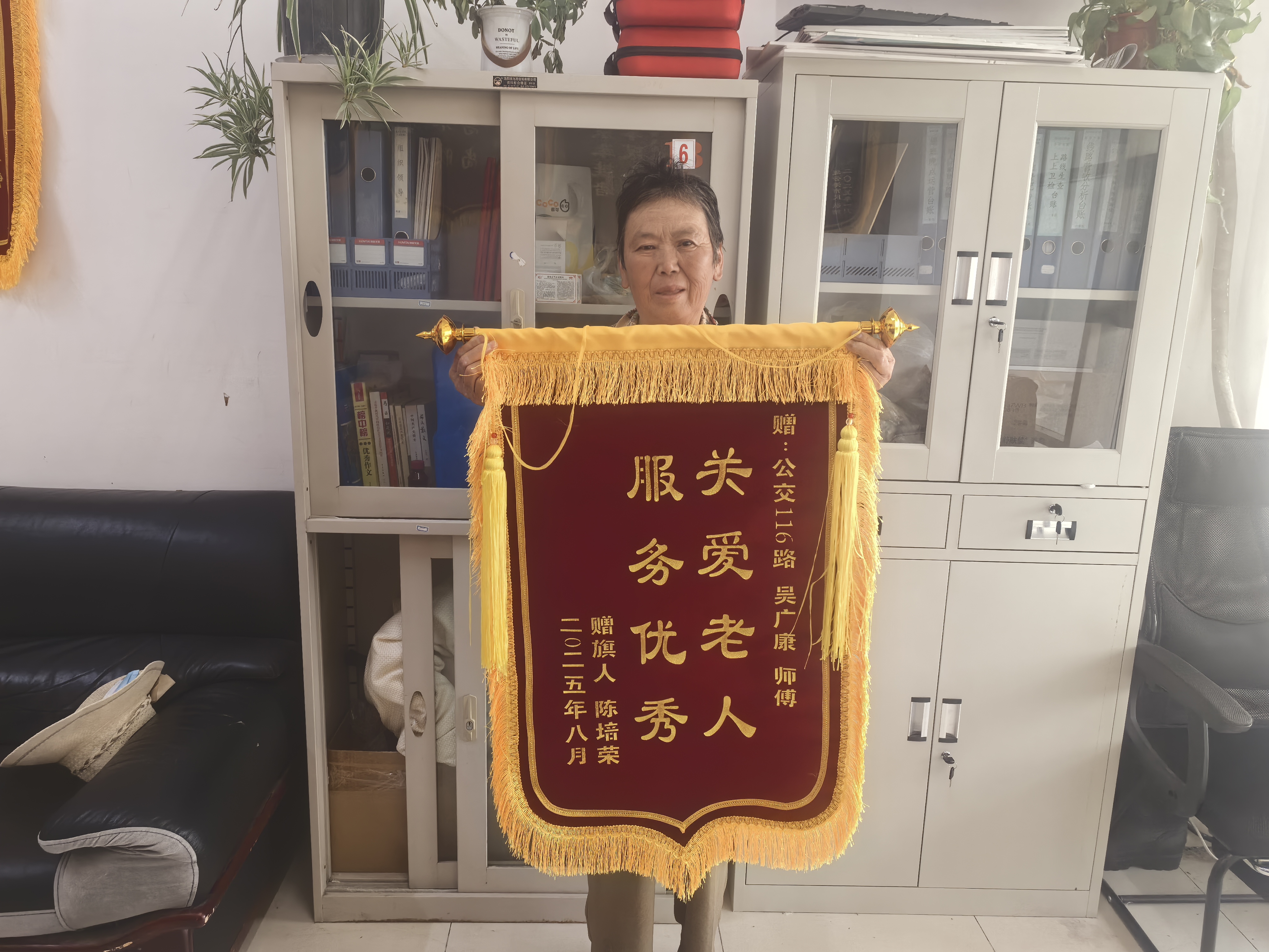 8月4日,一面印有“關(guān)愛老人、服務(wù)優(yōu)質(zhì)”的錦旗被送到了公交集團(tuán)場(chǎng)站。這面錦旗背后,是一段116路駕駛員與老年乘客之間跨越數(shù)年的暖心故事。