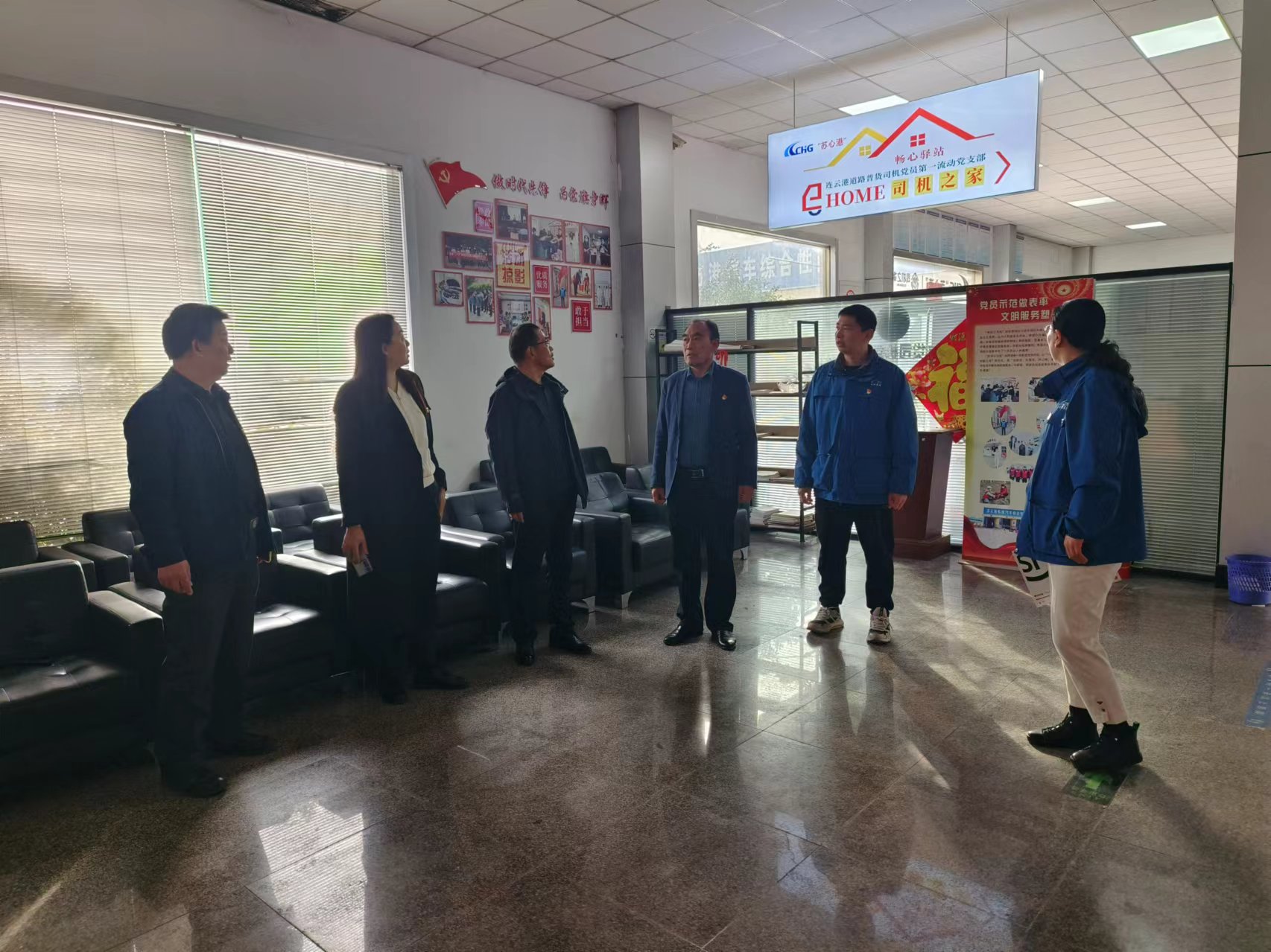 座談會(huì)結(jié)束后,雙方黨員代表共同前往“蘇心港”司機(jī)之家開(kāi)展實(shí)地參觀調(diào)研。在“蘇心港”工作人員的引導(dǎo)下,大家先后參觀了休息區(qū)、圖書(shū)角等功能區(qū)域,詳細(xì)了解司機(jī)之家的運(yùn)營(yíng)模式、服務(wù)內(nèi)容及日常接待情況。參觀過(guò)程中,雙方結(jié)合機(jī)動(dòng)車檢測(cè)行業(yè)服務(wù)特點(diǎn),就“蘇心港”后續(xù)發(fā)展提出諸多切實(shí)可行的建議,增加機(jī)動(dòng)車檢測(cè)政策咨詢服務(wù),幫助司機(jī)群體及時(shí)了解檢測(cè)新規(guī),搭建“檢測(cè) + 服務(wù)”聯(lián)動(dòng)平臺(tái),為司機(jī)提供檢測(cè)預(yù)約、車輛保養(yǎng)等一站式服務(wù),加強(qiáng)“蘇心港”品牌宣傳,擴(kuò)大服務(wù)覆蓋面,讓更多司機(jī)感受到行業(yè)關(guān)懷。