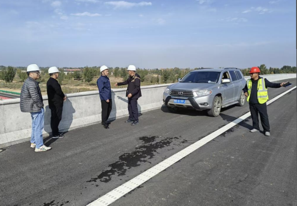 近日,江蘇海建副總經(jīng)理顧衛(wèi)星率質(zhì)量安全部、工程管理中心相關(guān)負責人,赴內(nèi)蒙古鄂爾多斯市S24昭君互通工程現(xiàn)場,專項檢查主體工程完工情況及后續(xù)驗收準備工作。鄂爾多斯市交通運輸局相關(guān)代表、監(jiān)理單位及施工項目部核心成員全程陪同檢查。