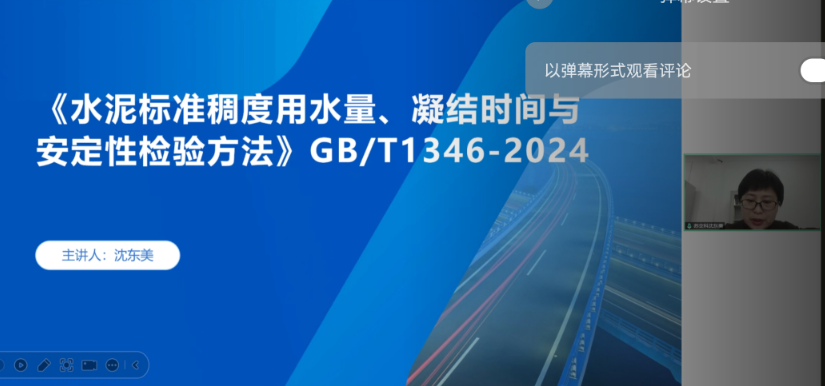3月27日,海建新絲路公司技術(shù)負(fù)責(zé)人積極參加GB/T1346-2024《水泥標(biāo)準(zhǔn)稠度用水量、凝結(jié)時(shí)間與安定性檢驗(yàn)方法》的宣貫培訓(xùn)。該標(biāo)準(zhǔn)將于2025年7月1日正式實(shí)施,替代原有的GB/T1346-2011標(biāo)準(zhǔn),對(duì)水泥檢測(cè)工作有著重要的指導(dǎo)意義。本次培訓(xùn)采用網(wǎng)絡(luò)直播形式進(jìn)行,由蘇交科集團(tuán)沈東美專(zhuān)家擔(dān)任主講老師。