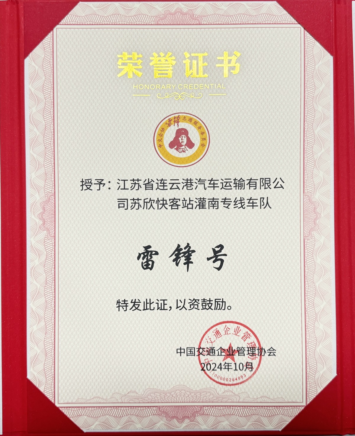 近日,由中國交通企業(yè)管理協(xié)會主辦的“中交企協(xié)雷鋒工委年會暨學雷鋒志愿服務(wù)典型集體和個人成果發(fā)布會”在北京隆重舉行。會上,汽車公司灌南專線車隊獲得“雷鋒號”稱號。這一榮譽不僅是對車隊在客運服務(wù)領(lǐng)域工作的認可,更是對其深入貫徹雷鋒精神、全心全意服務(wù)于人民的宗旨的高度評價。