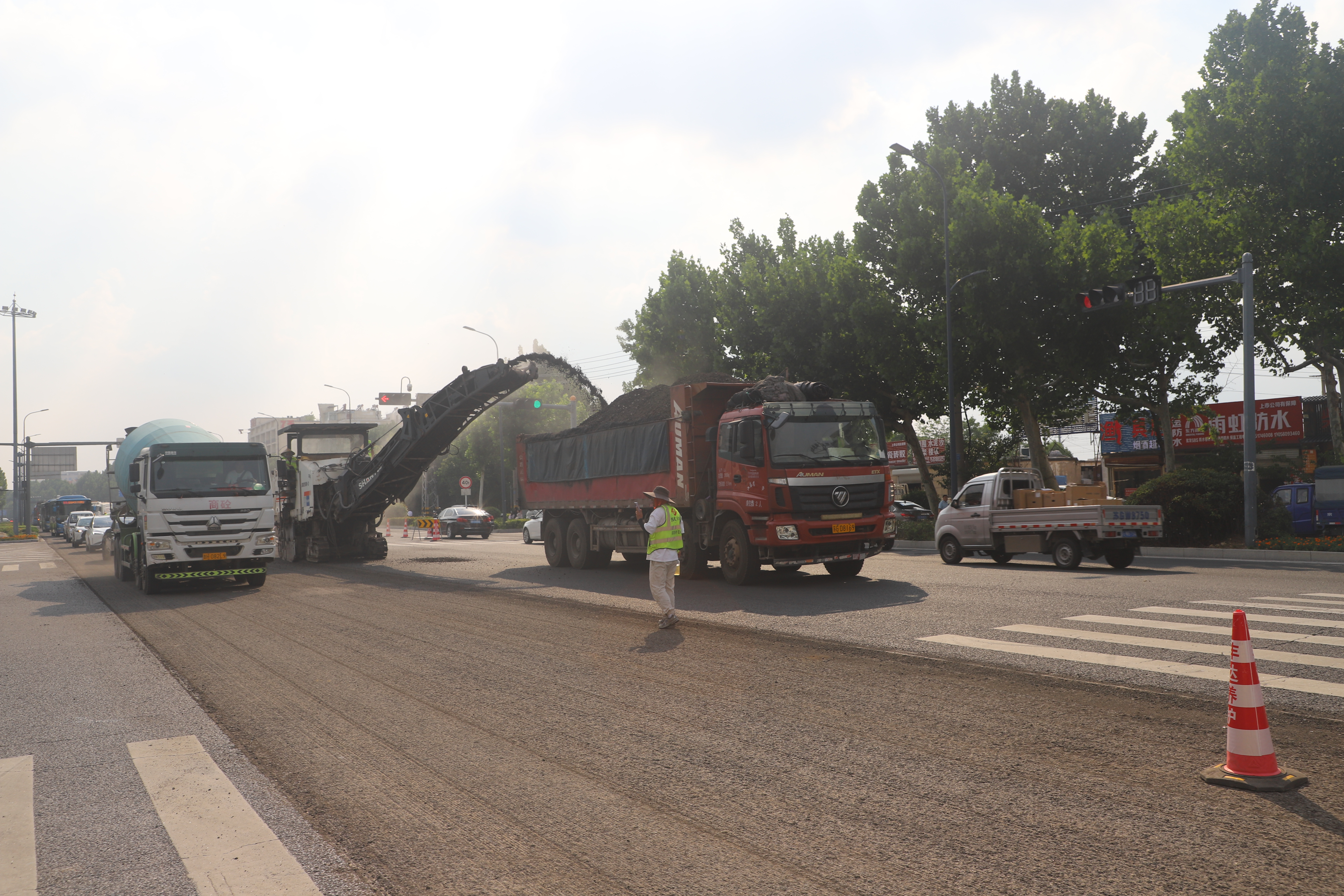 人民路外圍車流量大,重型車輛較多,路面沉降、龜裂、車轍等病害較為嚴(yán)重,行車舒適性較差,且不能全封閉施工。為加快施工進(jìn)度,避免高峰路段擁堵,項(xiàng)目部人員不畏高溫酷暑,攻堅(jiān)克難,采取降塵除塵、分段施工、基坑防護(hù)等多項(xiàng)措施錯(cuò)峰施工,克服噪音擾民等諸多困難,做好全線文明施工工作,共投入機(jī)械設(shè)備18余臺(tái)次,人員30余人,歷經(jīng)八晝夜的加緊施工,共修補(bǔ)攤鋪路面56336.7平方米。