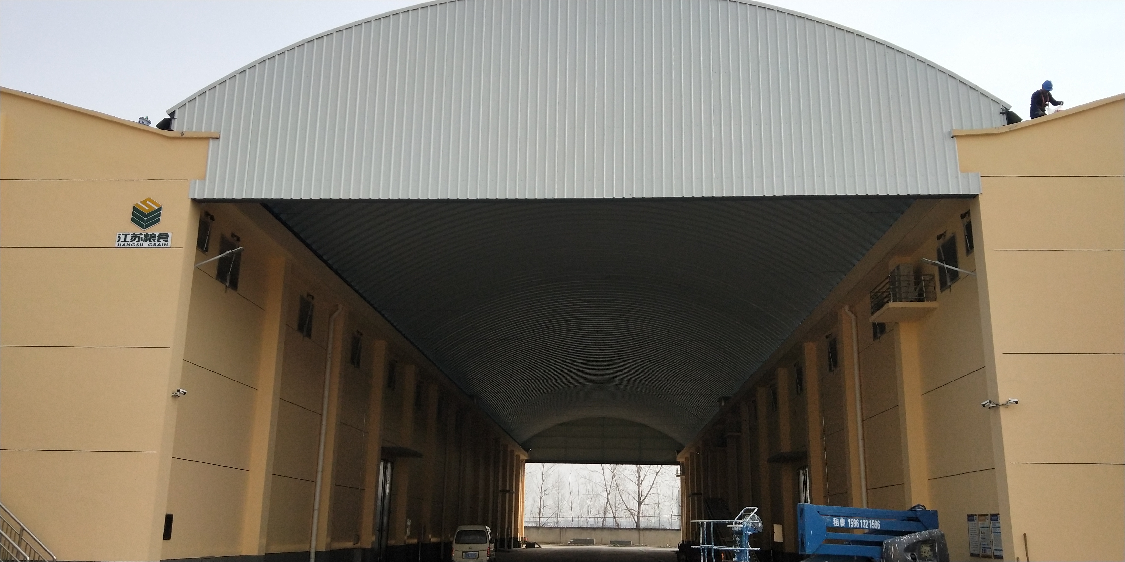 倉間罩棚的建成,將保障和茂公司在糧食收購期間為糧食儲存提供短期儲糧區(qū)域,方便陰雨天氣進(jìn)行糧食整理,還可為烘干設(shè)備提供高水分糧食的臨時周轉(zhuǎn)倉所,將極大的方便和茂公司糧食的收儲、加工和運(yùn)輸工作。