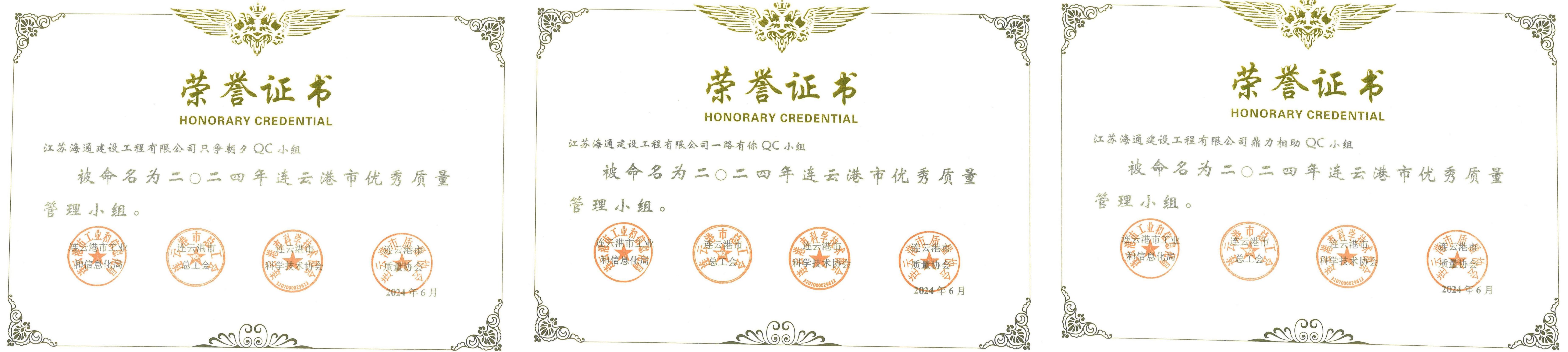 近日,據(jù)連工信發(fā)〔2024〕76號文《關(guān)于表彰2024年連云港市優(yōu)秀質(zhì)量管理小組、質(zhì)量信得過班組、優(yōu)秀企業(yè)、卓越領(lǐng)導(dǎo)者、優(yōu)秀推進者的通知》,江蘇海建公司只爭朝夕QC小組、一路有你QC小組、鼎力相助QC小組榮獲2024年連云港市優(yōu)秀質(zhì)量管理小組。