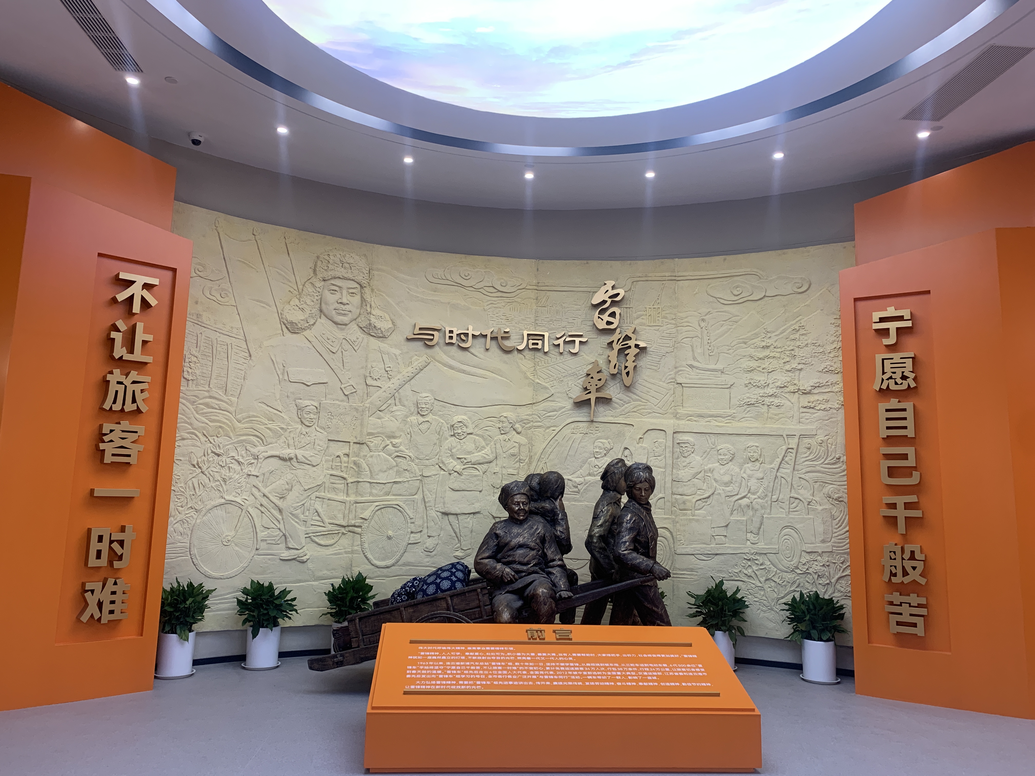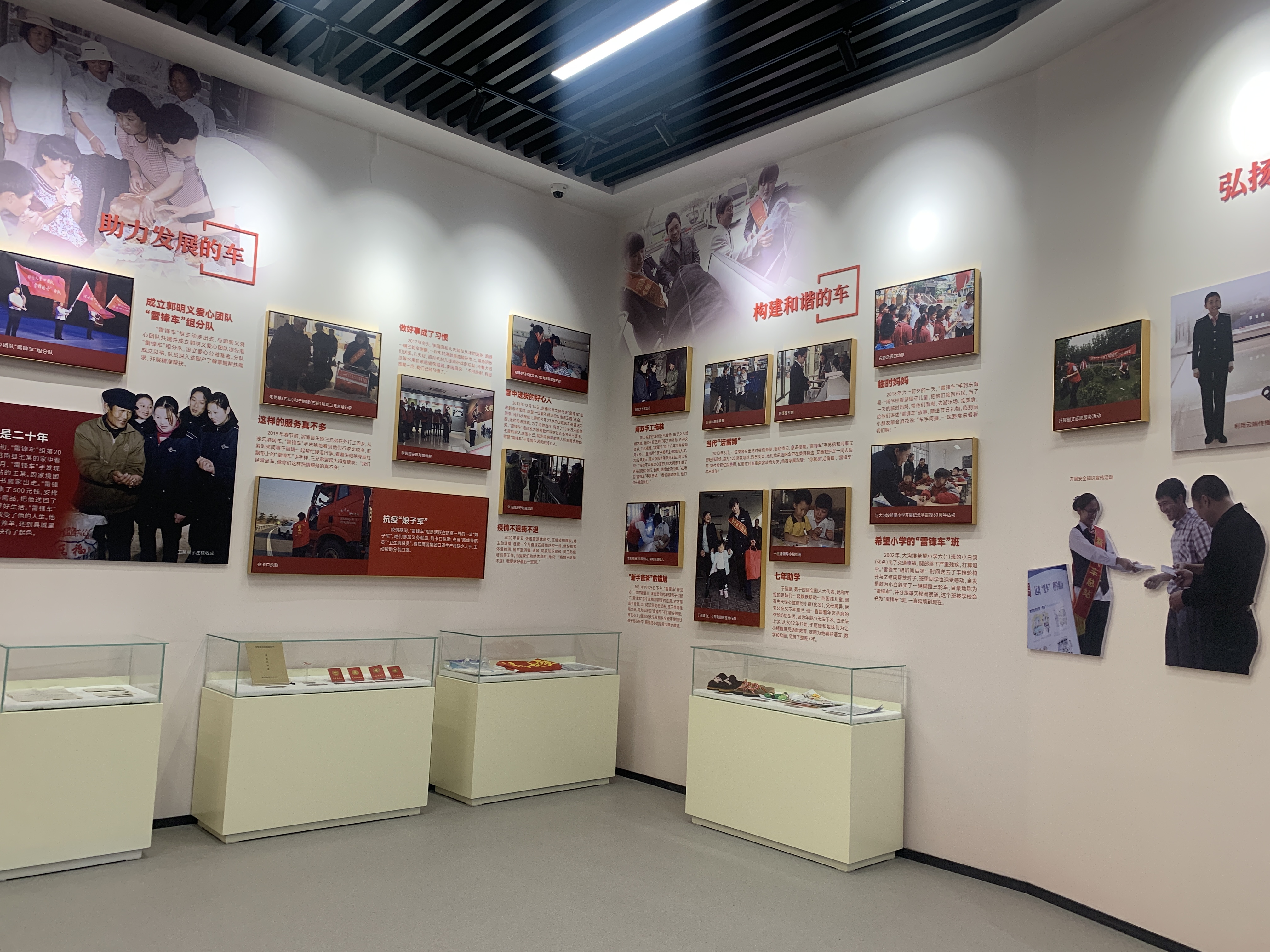 “雷鋒車”事跡陳列館位于江蘇省連云港市新浦汽車總站客運站二層,面積由原來的300平米增至614平米,展覽線路長度約230米。整個展館分為四個部分:在學(xué)雷鋒大潮中誕生、在改革開放中發(fā)展、在新時代中奮進、在傳承弘揚中廣大。根據(jù)時代變遷中“雷鋒車”組的成長脈絡(luò)和感人故事,通過標(biāo)志性圖片、數(shù)據(jù)圖標(biāo)、音像視頻、實物文物和場景造型附以說明文字等多種方式,全方位立體展示“雷鋒車”組60年間全心全意為人民服務(wù)的先進事跡,讓參觀者擁有更加直觀的觀展體驗。