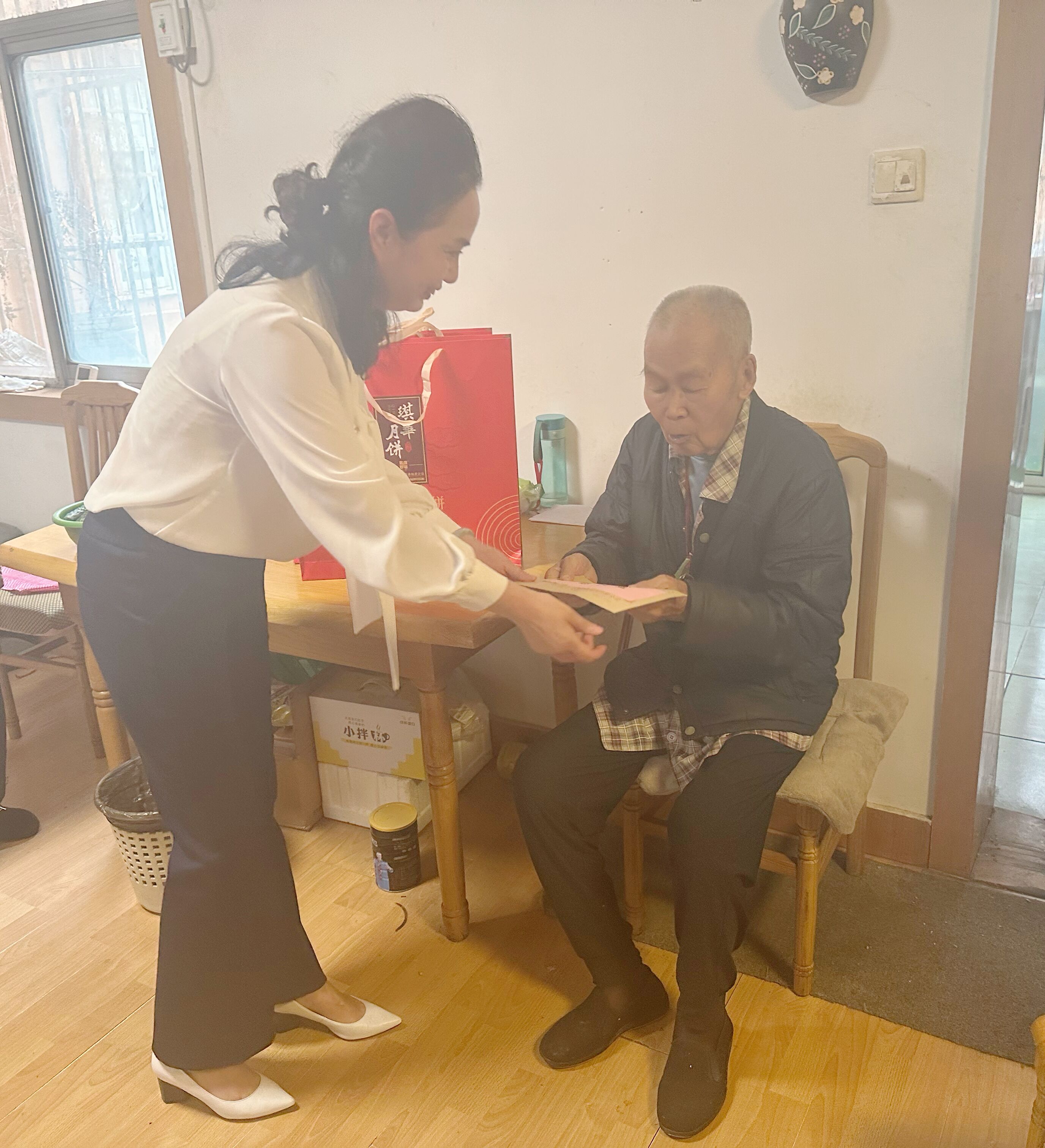 月圓情更濃,中秋送溫暖,中秋佳節(jié)來臨之際,汽服公司總經(jīng)理助理王有利代表公司黨委來到離休老干部周林家中,給他送去誠摯的節(jié)日祝福以及慰問金和月餅等慰問品,把黨的關(guān)懷與溫暖送到老干部的家中。