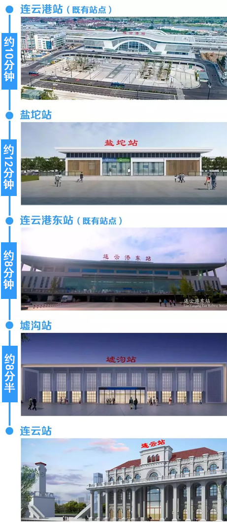 市域列車一期工程連云港站至連云站,線路全長35.1公里,沿線設(shè)置連云港、鹽坨、連云港東、墟溝、連云共5個(gè)客站。開通運(yùn)營后,市域列車每日有11對列車對開,10對在連云港站至連云站區(qū)間運(yùn)行,1對在連云港站至連云港東站區(qū)間運(yùn)行。
