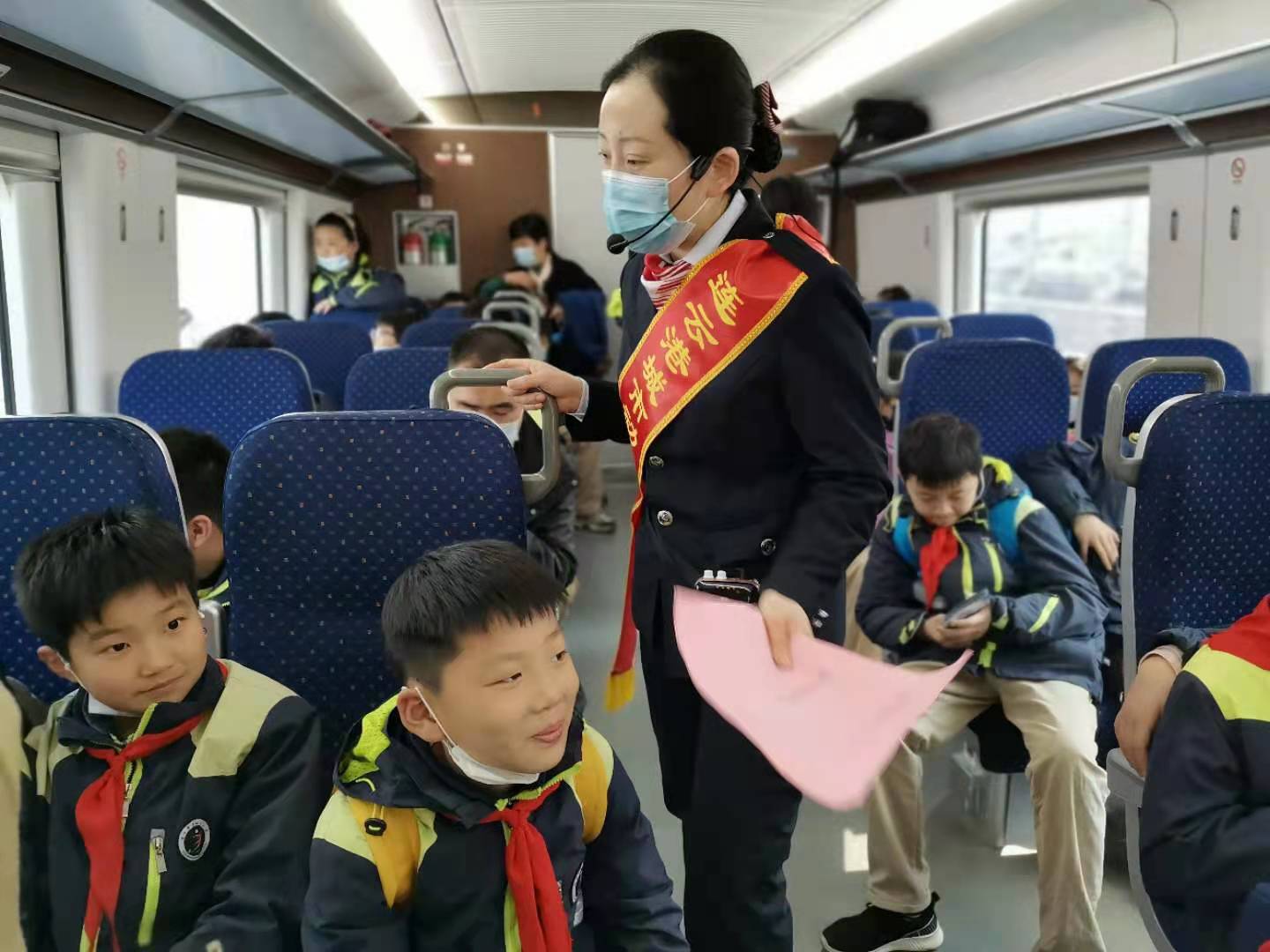 近日,墟溝小學(xué)的師生們整裝待發(fā),來(lái)到城市動(dòng)車墟溝站,體驗(yàn)城市動(dòng)車舒適快捷。城市動(dòng)車站務(wù)員們熱情接待了他們,站務(wù)員給同學(xué)們介紹了墟溝站的概況,尤其是墟溝站的頂棚設(shè)計(jì)采用起伏多變的波浪造型,它象征著“星辰大海”,體現(xiàn)港城特色的海洋文化。同學(xué)們?cè)谠屡_(tái)等候列車時(shí),看見列車駛?cè)胝九_(tái),同學(xué)們沸騰了,大聲說(shuō)到:“美猴王踏著祥云向我們飛來(lái)了?!痹谲嚿希緞?wù)員們?yōu)橥瑢W(xué)們講解了城市動(dòng)車的概況、乘車禁止攜帶的危險(xiǎn)品及高鐵、動(dòng)車、普速列車的區(qū)別。高鐵是以G開頭的車次,動(dòng)車是以D開頭的車次;高鐵時(shí)速是在300公里以上,動(dòng)車時(shí)速是在200公里以上;高鐵使用的是專用鐵軌,動(dòng)車使用的既可以是高鐵專用鐵軌,也可以是經(jīng)過(guò)改裝的普通鐵軌;高鐵可以稱作專線,設(shè)置的站臺(tái)很少,動(dòng)車全線設(shè)置,站臺(tái)較多;動(dòng)拖比不同,高鐵屬于強(qiáng)動(dòng)力分散型,動(dòng)車屬于弱動(dòng)力分散型;動(dòng)車比普速列車速度快是因?yàn)閯?dòng)力不同,動(dòng)車是無(wú)牽引力軌道車輛,裝配有驅(qū)動(dòng)車輪;而普速列車是由一至三節(jié)機(jī)車牽引若干車廂或車皮組成。同學(xué)們聽完講解,熱情高漲,并與站務(wù)員相互交流。在不知不覺(jué)中,列車已經(jīng)到達(dá)了終點(diǎn)站連云站。墟溝小學(xué)張校長(zhǎng)講,通過(guò)這次活動(dòng)不僅讓同學(xué)們感受到了城市動(dòng)車的舒適快捷,也豐富了同學(xué)們的課外知識(shí),并為你們熱情服務(wù)和業(yè)務(wù)素養(yǎng)點(diǎn)贊。