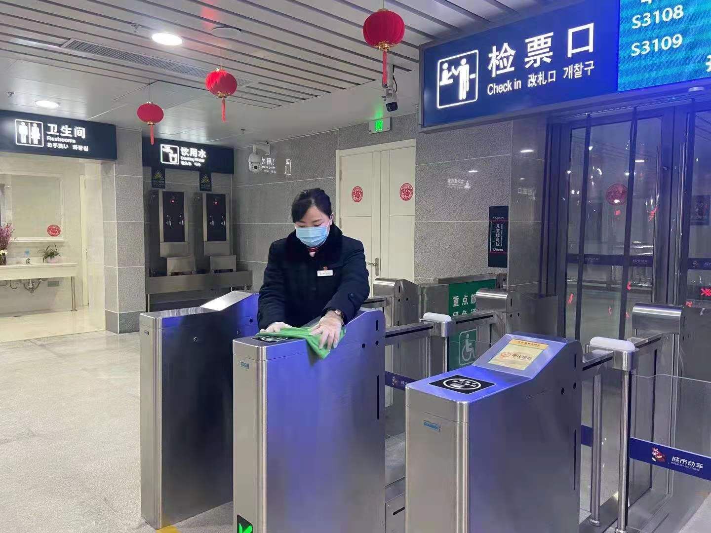 連云港城市動(dòng)車作為連云港市交通運(yùn)輸?shù)闹匾獦屑~,每天迎來四面八方的旅客,疫情當(dāng)前,我們要做好守護(hù)生命的第一條防線。首先,站務(wù)員按時(shí)到崗、測量體溫并做好記錄,消毒擦拭閘機(jī)、安檢儀、座椅等乘客能接觸到的設(shè)施設(shè)備及候車室地面、衛(wèi)生間等全面消毒。同時(shí),監(jiān)測每位乘客體溫,確保乘客安全。列車到站后的車廂也進(jìn)行了全面消毒。面對來勢兇猛的疫情,高速路口封了,農(nóng)村路堵了,客運(yùn)班線停運(yùn)了,公交也只剩四條線路在運(yùn)營,而我們城市動(dòng)車依然正常運(yùn)行,城市動(dòng)車工作人員依然堅(jiān)守崗位。面對疫情,怕嗎?怕,但是我們明白什么是責(zé)任,什么是使命。