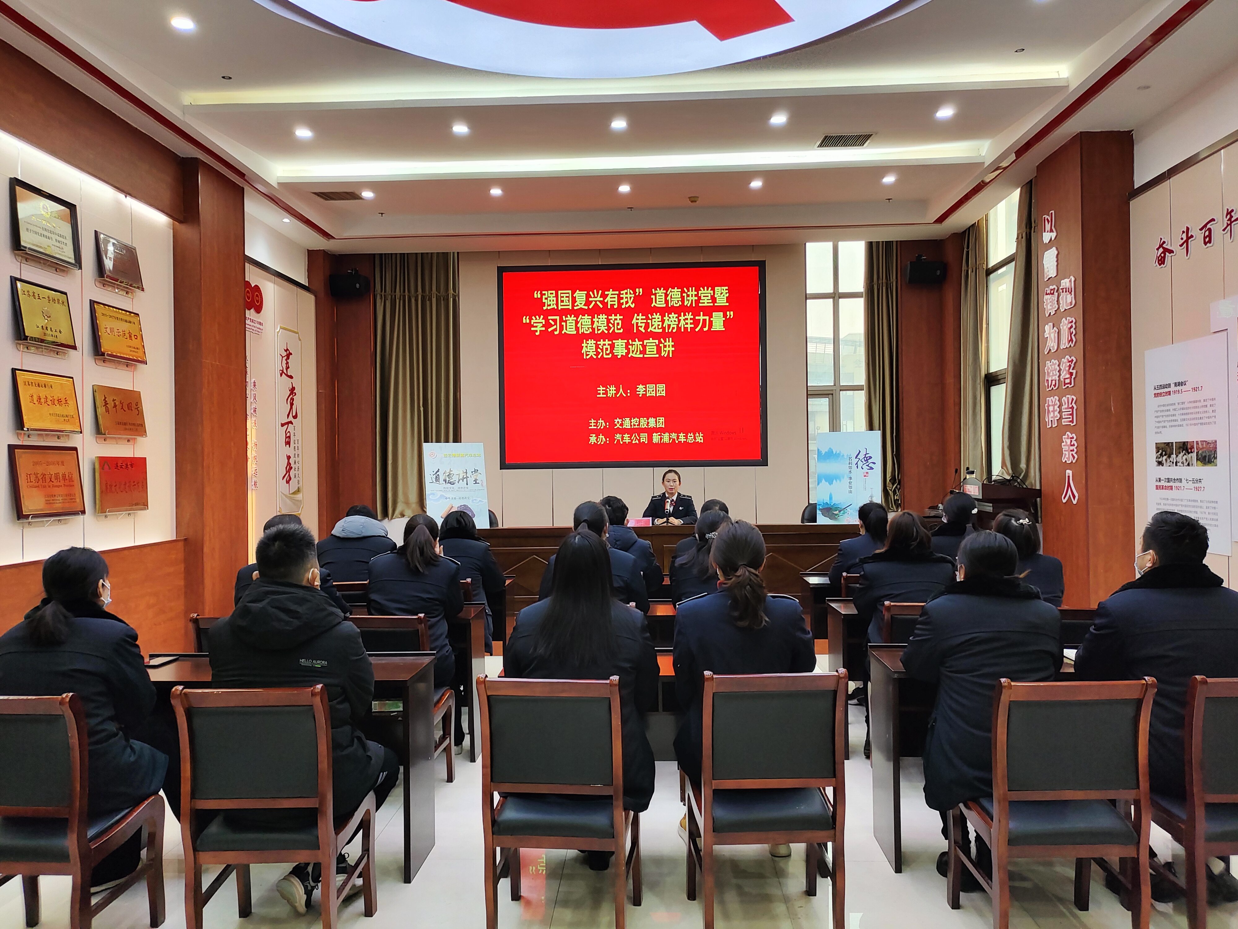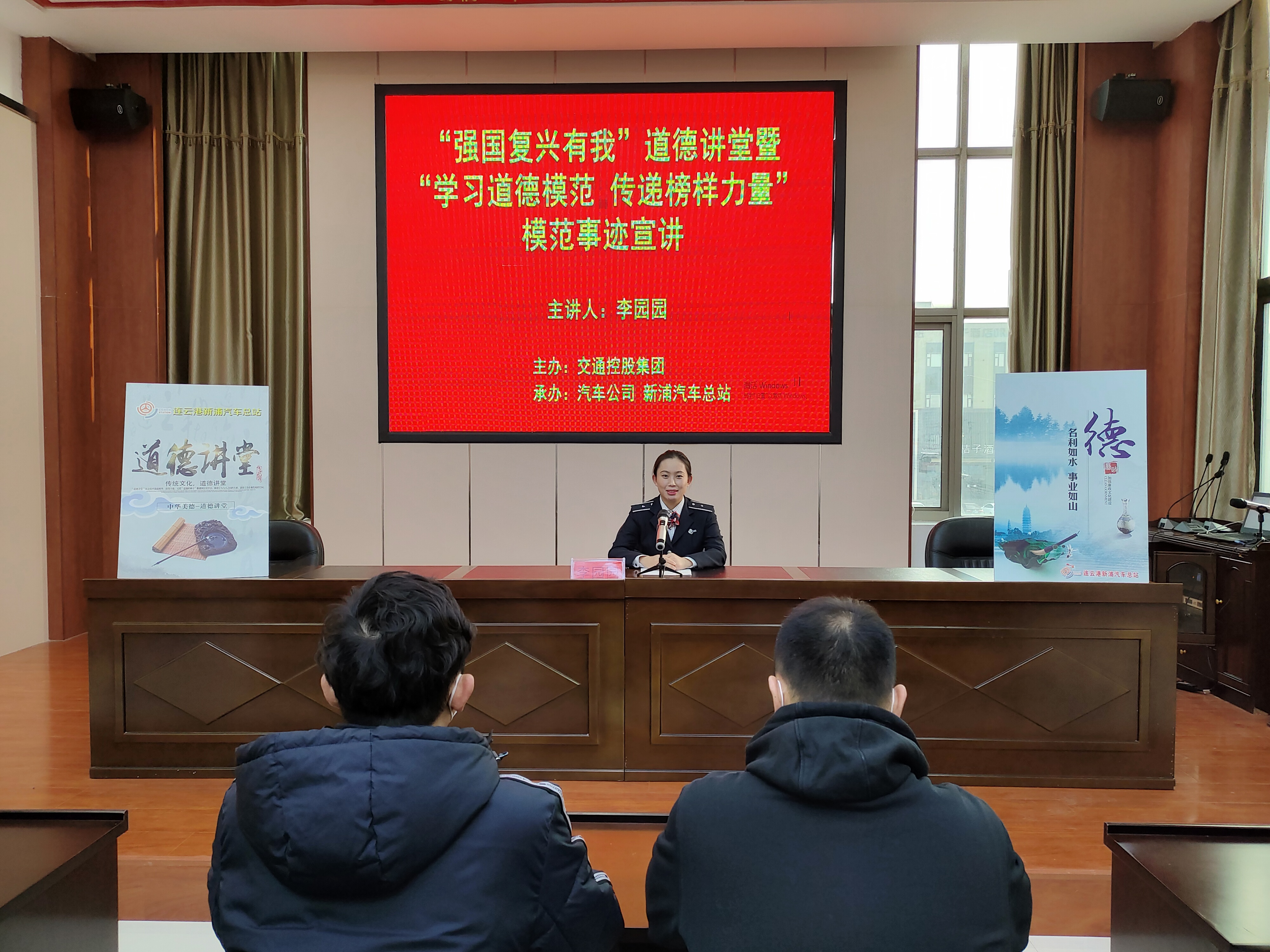 為認(rèn)真落實(shí)“強(qiáng)國(guó)復(fù)興有我”道德講堂暨“學(xué)習(xí)道德模范  傳遞榜樣力量”主題宣傳教育活動(dòng),12月7日下午,由交通控股集團(tuán)主辦,汽車公司、新浦汽車總站承辦的道德模范進(jìn)講堂活動(dòng)在新浦汽車總站二樓黨員會(huì)議室開講?;顒?dòng)邀請(qǐng)市五一勞動(dòng)獎(jiǎng)?wù)芦@得者、第六代“雷鋒車”手李園園宣講,公司領(lǐng)導(dǎo)班子及干部職工代表30余人參加活動(dòng)。